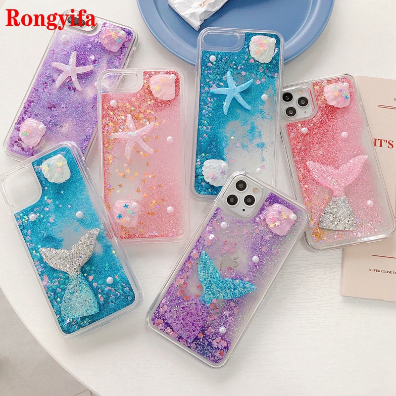Xiaomi Redmi Note 7 6 Pro 6 6A Phone Case Mermaid Quicksand Liquid Pearl Shell Glitter Bling TPU Case Cover