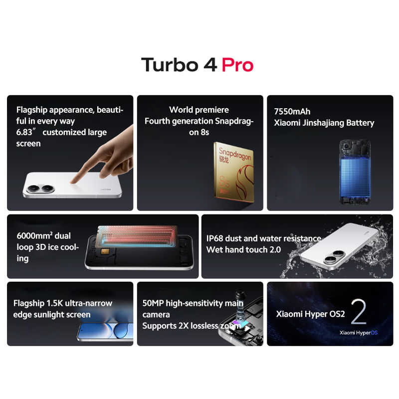 Xiaomi Redmi Turbo 4 Pro 5G NFC 6.83”Smartphone Snapdragon 8S Gen 120Hz 50Mp+20Mp Camera 90W C1