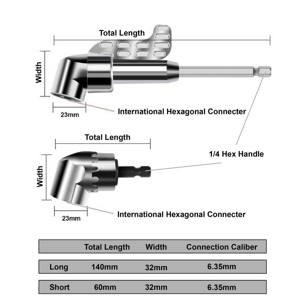 Xin0124 Long Magnetic Angle Driver Screwdriver Bit Extension Hex Drill Bent Adapter 1/4" Hex Shank