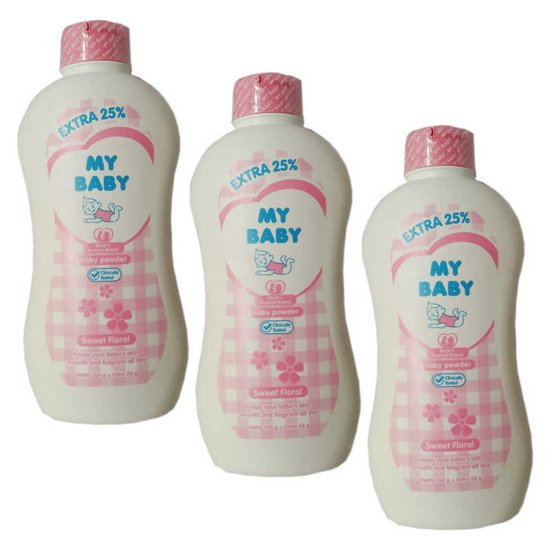 MY BABY Mums Trusted Brand Baby Powder Clinically Tested I Sweet Floral, 150G X 3Pcs 45B