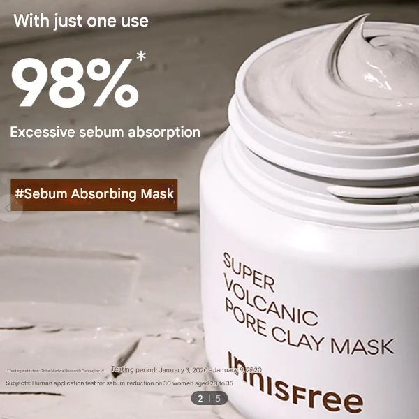 INNISFREE Super Volcanic Pore Mask 100ml Korean Skincare Deep Clean Mattifying Pore Tightening Mask