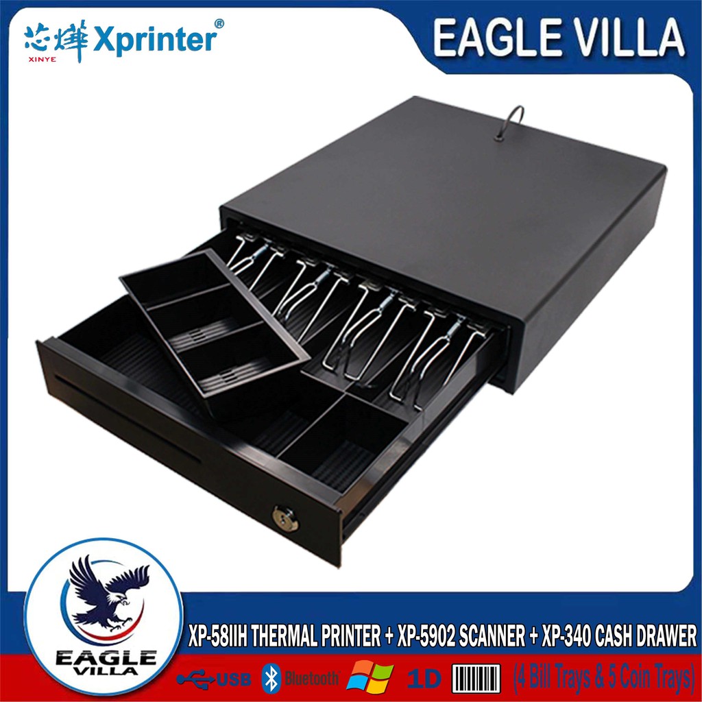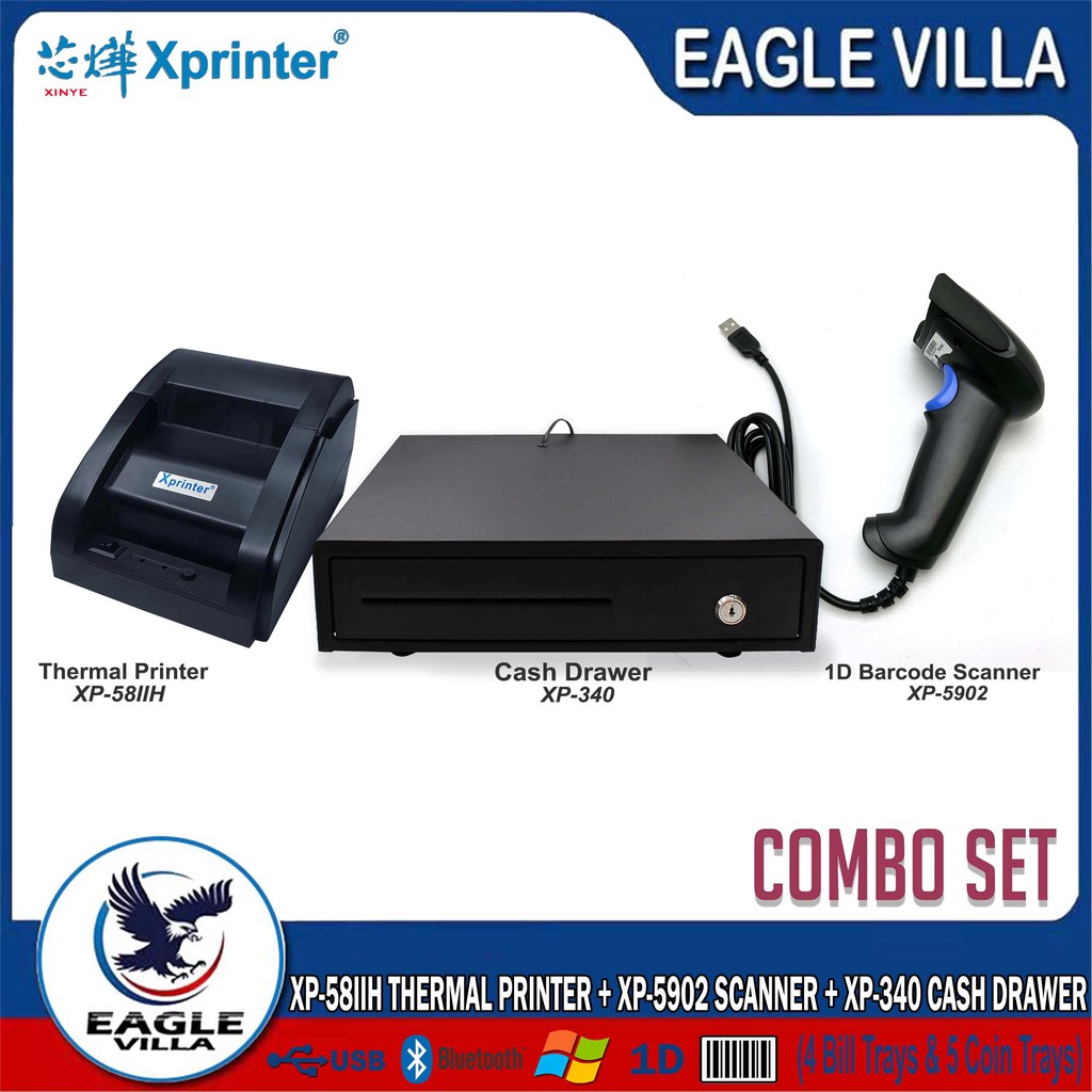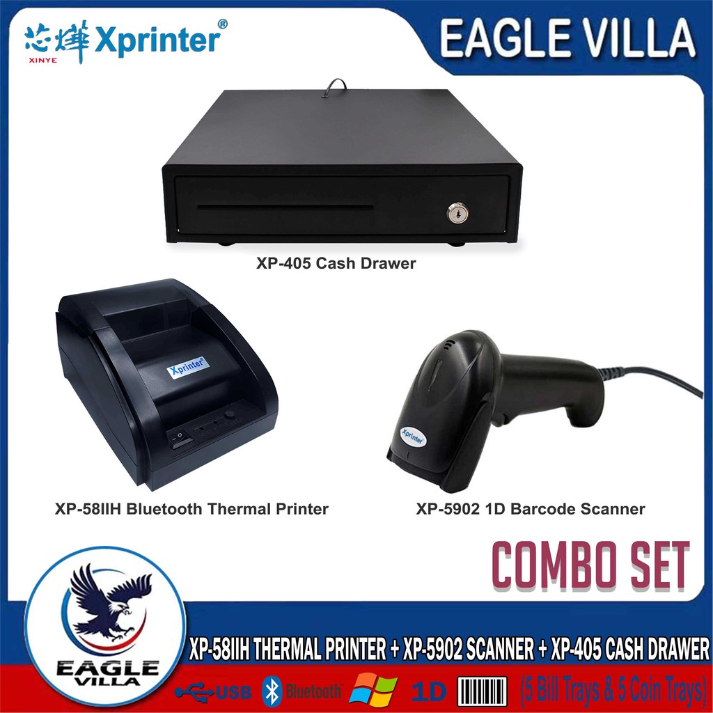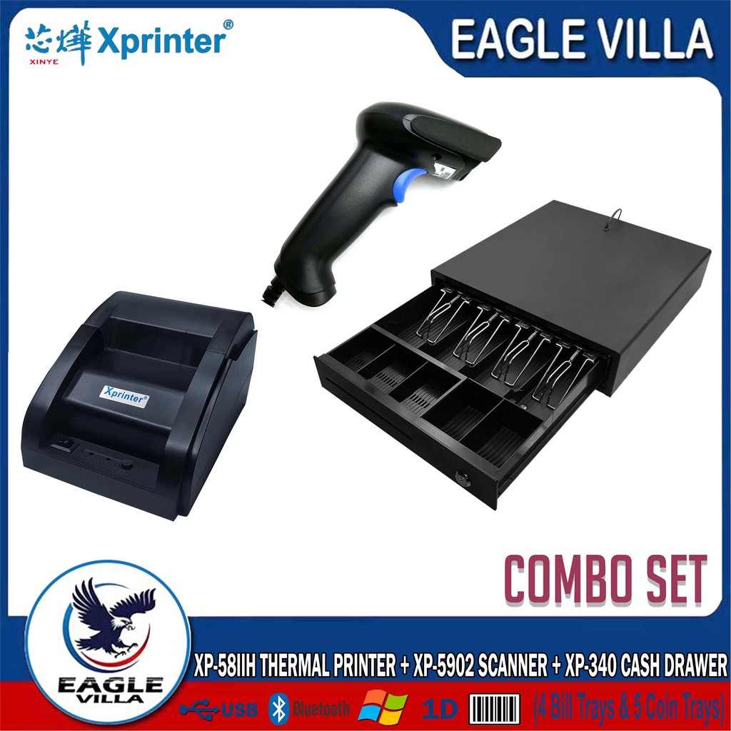 Xprinter XP-58IID (Bluetooth+USB)Thermal Cash Receipt POS Printer+Cash Drawer+9100 Scanner Combo Set