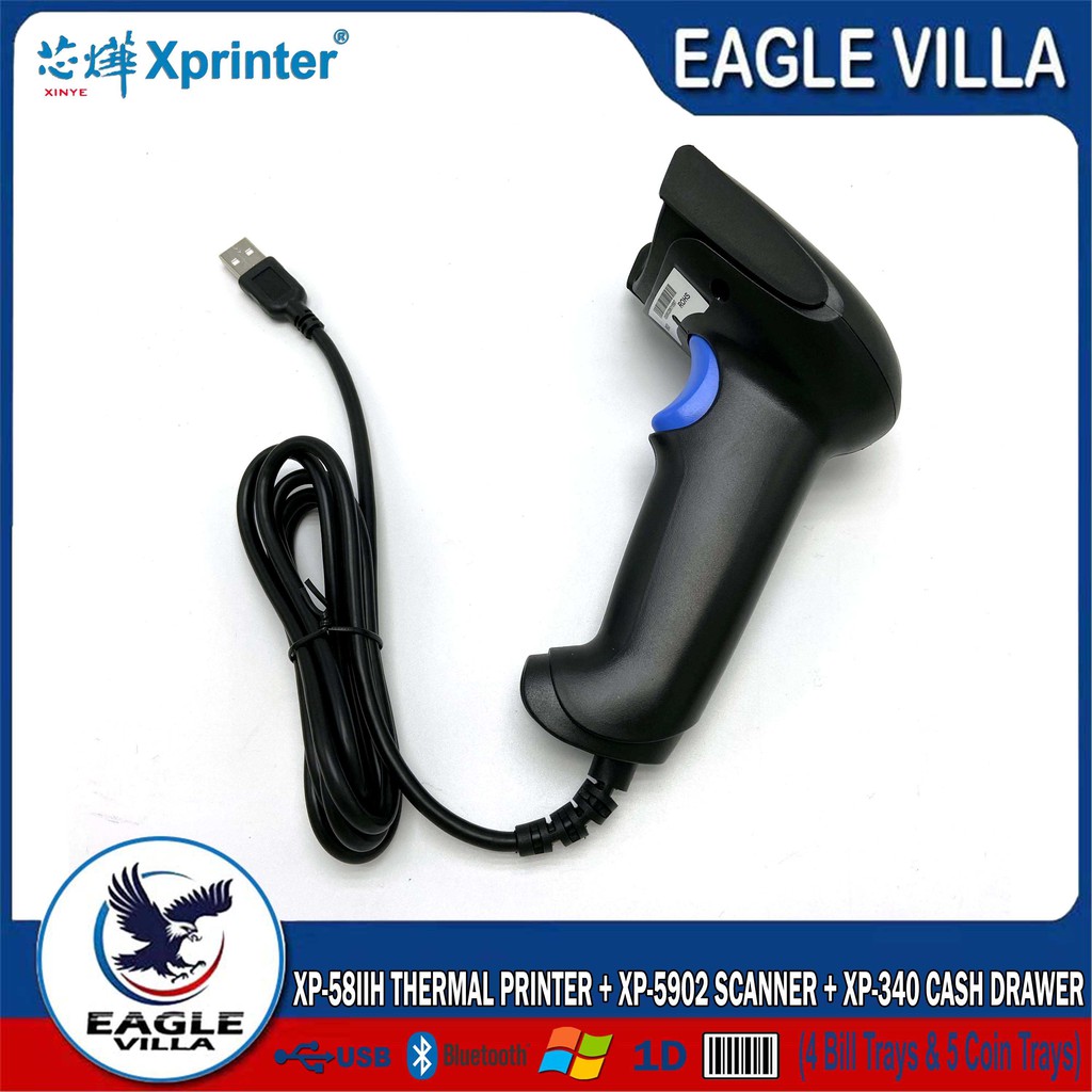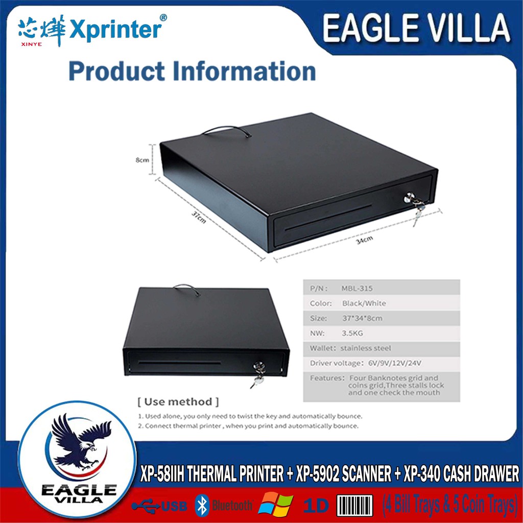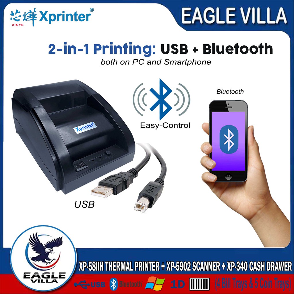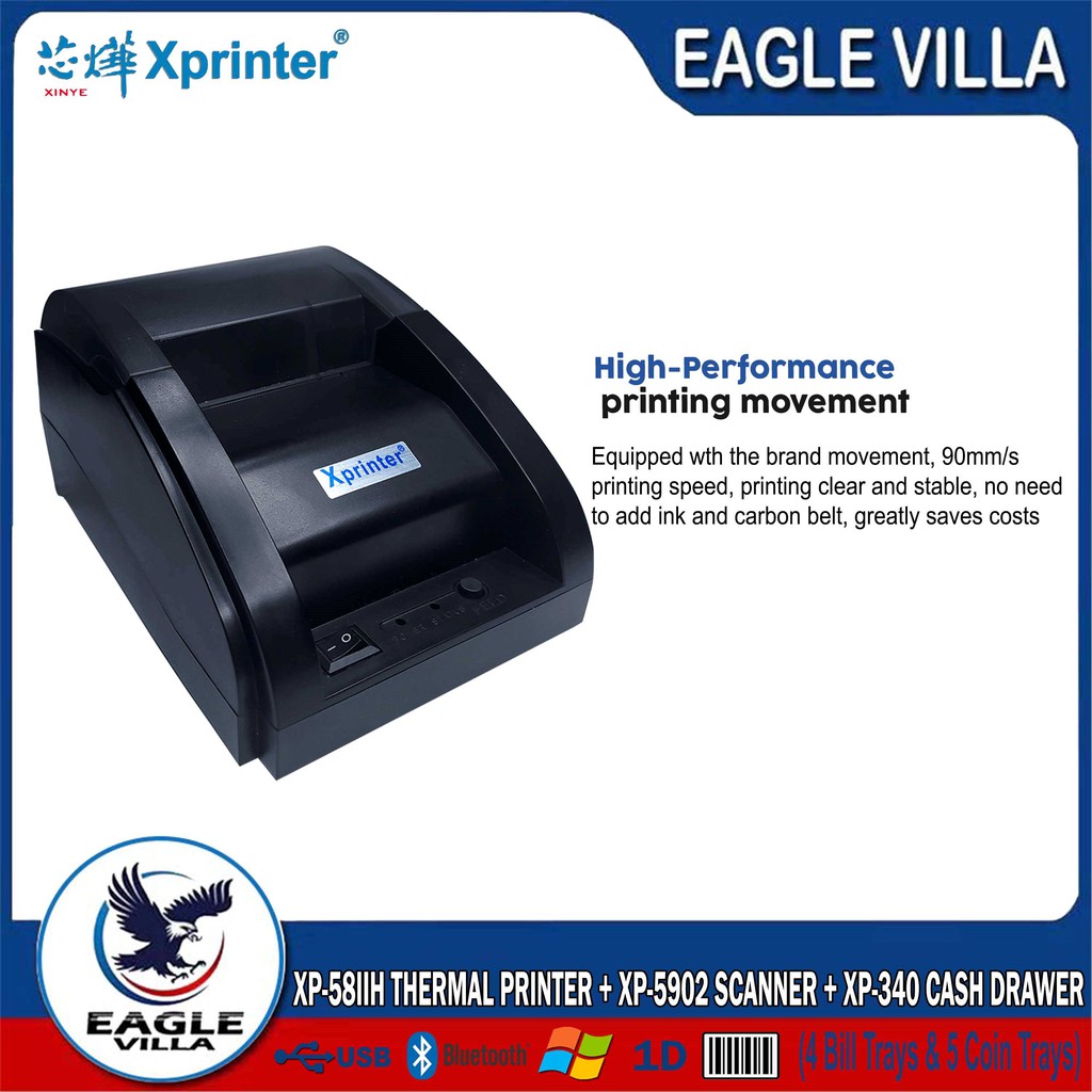 Xprinter XP-58IID (Bluetooth+USB)Thermal Cash Receipt POS Printer+Cash Drawer+9100 Scanner Combo Set
