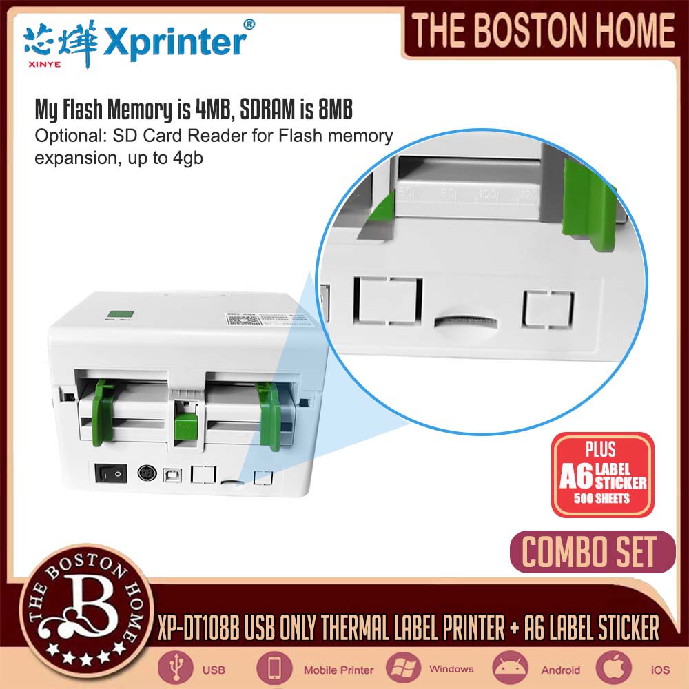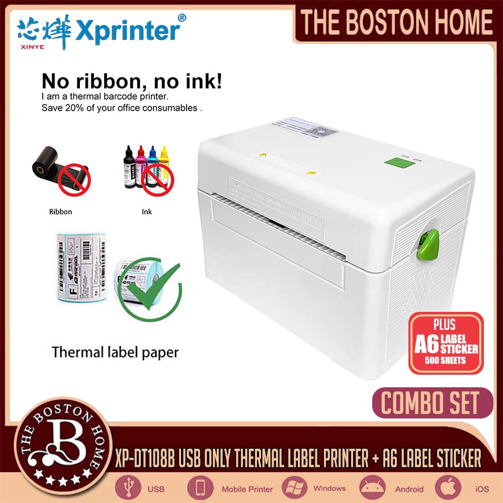 Xprinter XP-DT108B (USB ONLY) Thermal Label Printer + A6 LABEL THERMAL STICKER 3-LAYER (COMBO SET)
