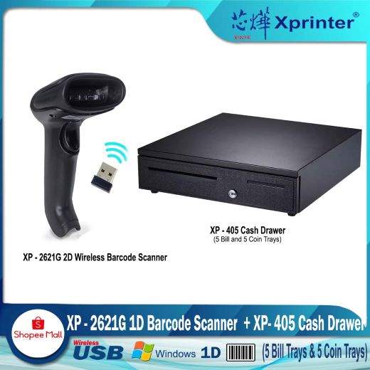 Xprinter Xinye XP-405 Cash Drawe+9100G Wireless 1D Barcode Scanner