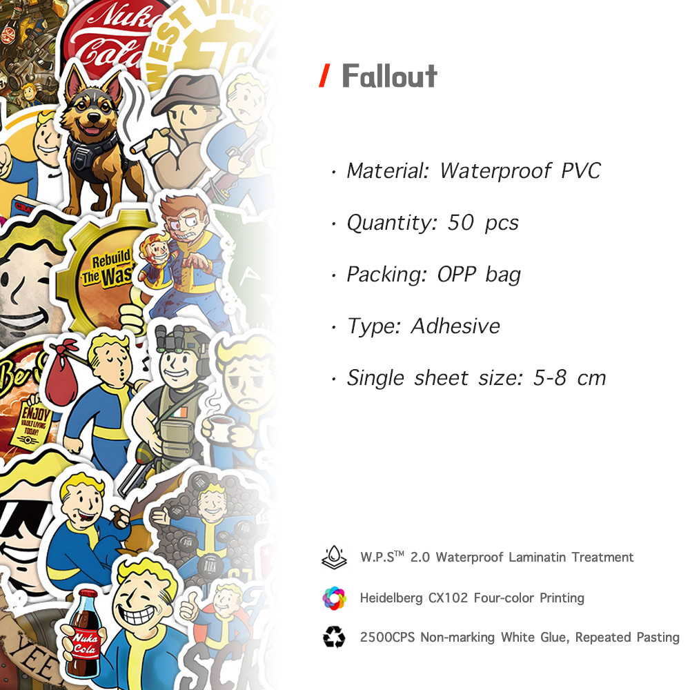 Y&P| Fallout Stickers Set Video Games Graffiti Waterproof Decals Pack for Kids, 50 pcs/set