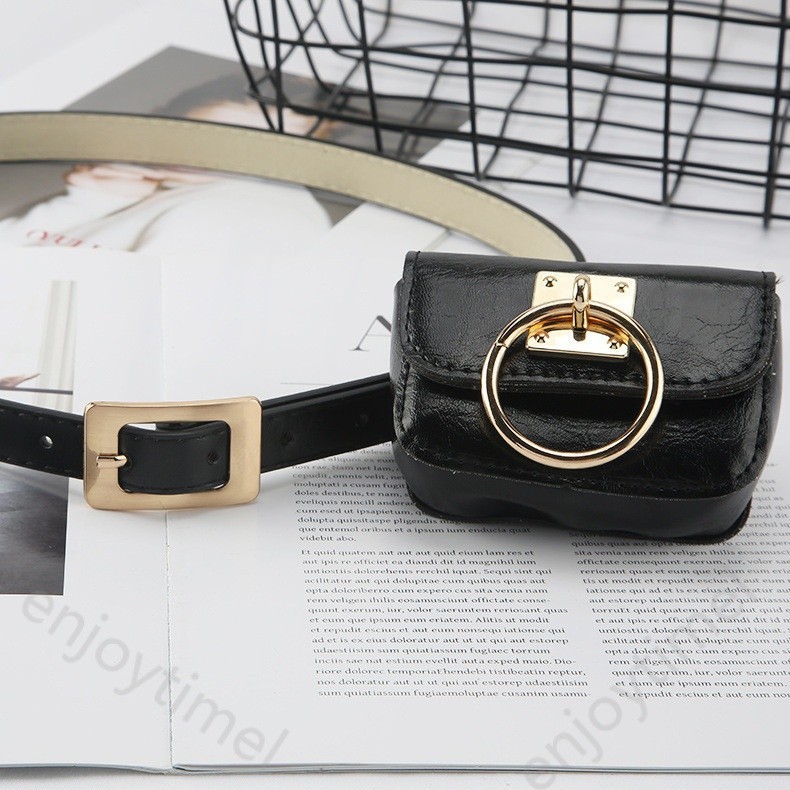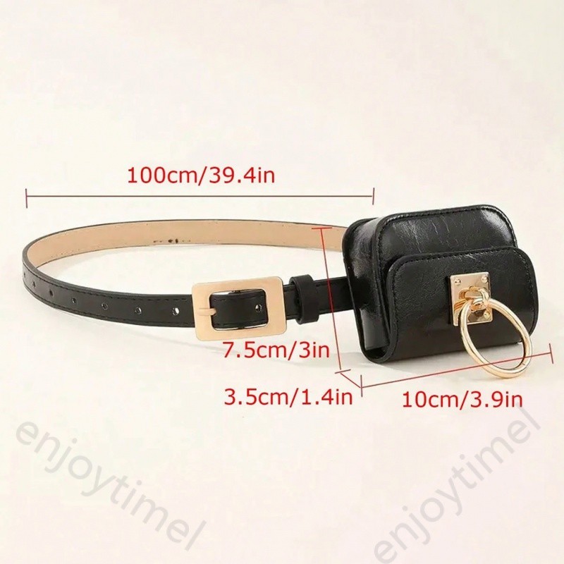 Y2K Vintage Belt Bag Gothic Fanny Packs For Women Punk Square Heart Metal Buckle Belts PU Leather Travel Waist Purse Female