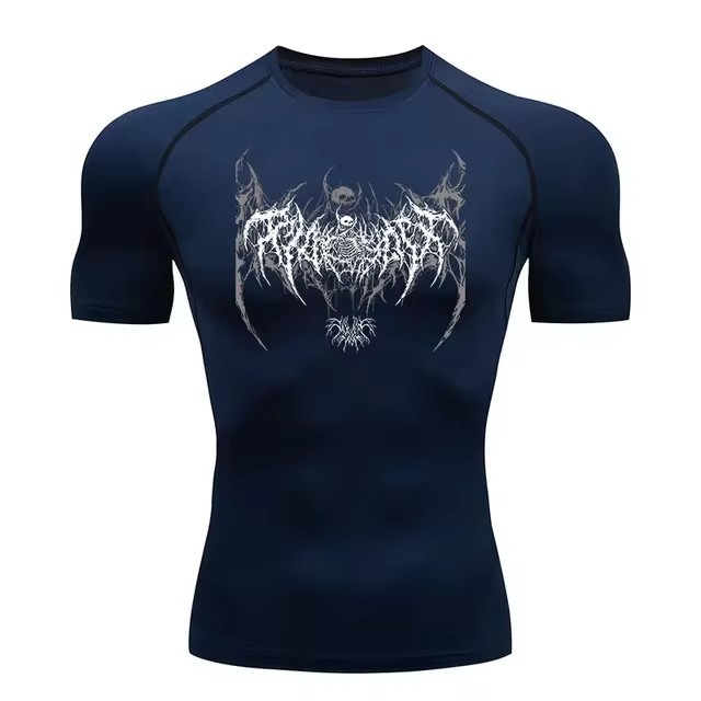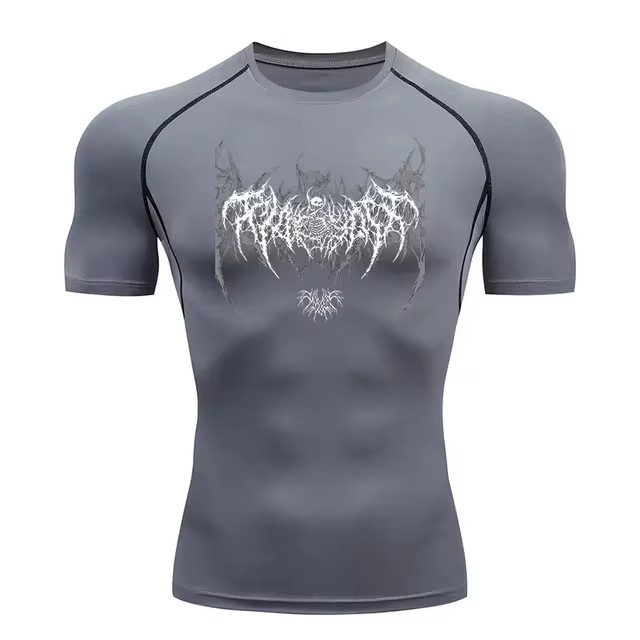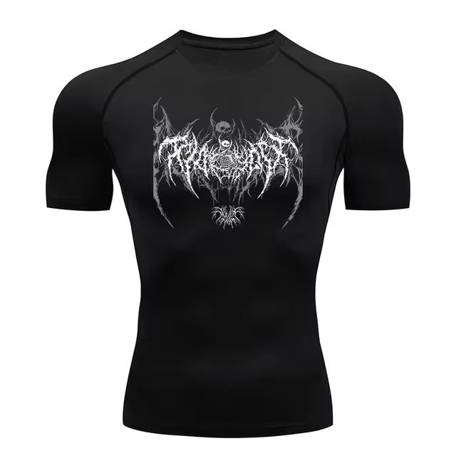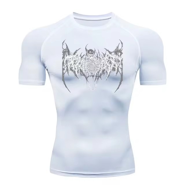 Y2k Compression Shirt Men's Gym Skull Sports Running T-Shirt Rashgard Top T-Shirt Men's Quick-Drying Short-Sleeved T-Shirt