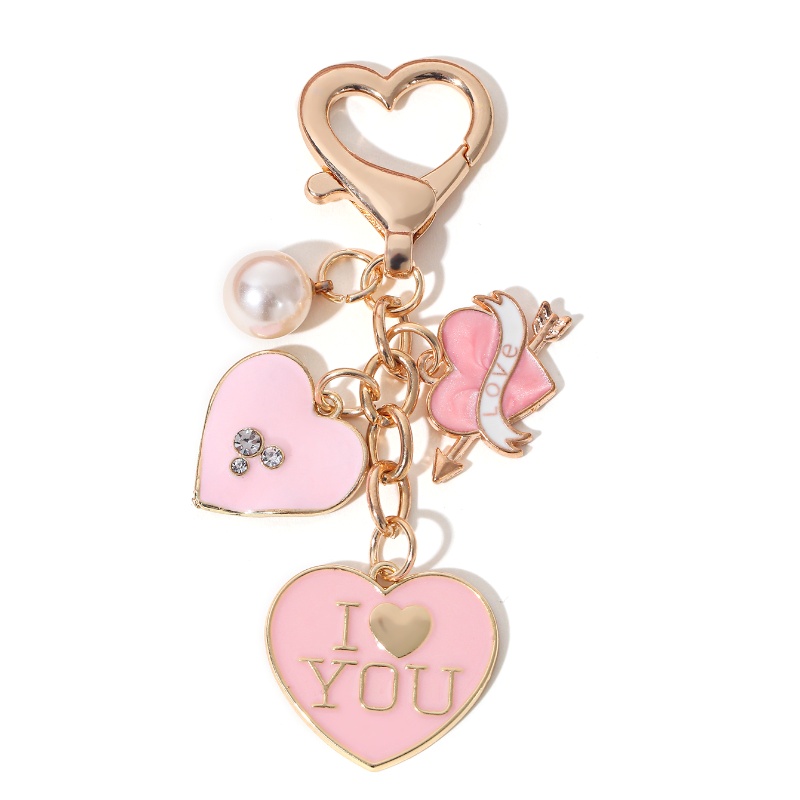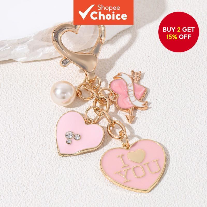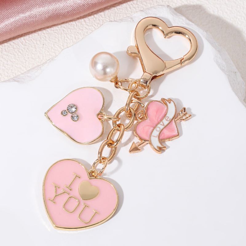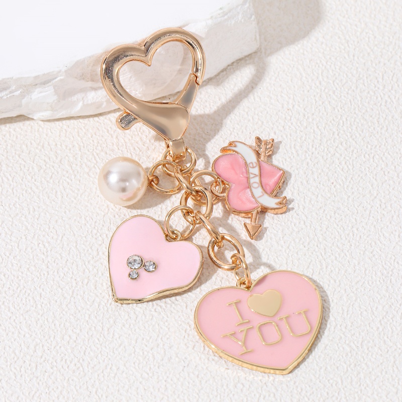 Y2k Pink Heart I Love You Keychain Pearl Lovely Key Ring For Women Girl Handmade Jewelry Set