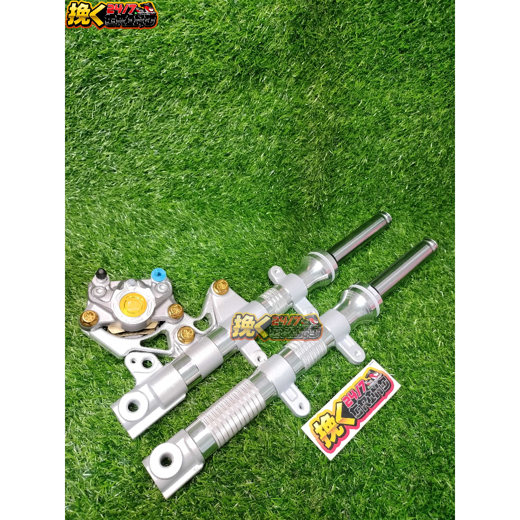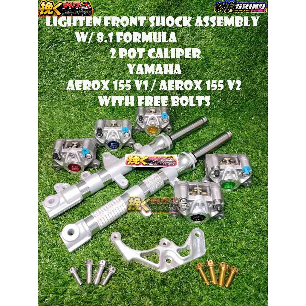 YAMAHA AEROX 155 LIGHTEN FRONT SHOCK ASSEMBLY V3 WITH 8.1 FORMULA 2POT CALIPER FREE HENG BOLTS