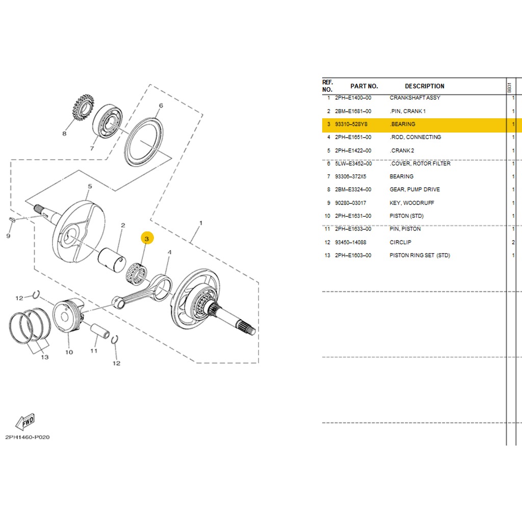 YAMAHA GENUINE CONNECTING ROD NEEDLE BEARING / CRANK PIN BEARING FOR MIO I 125 ( 93310-528YP )