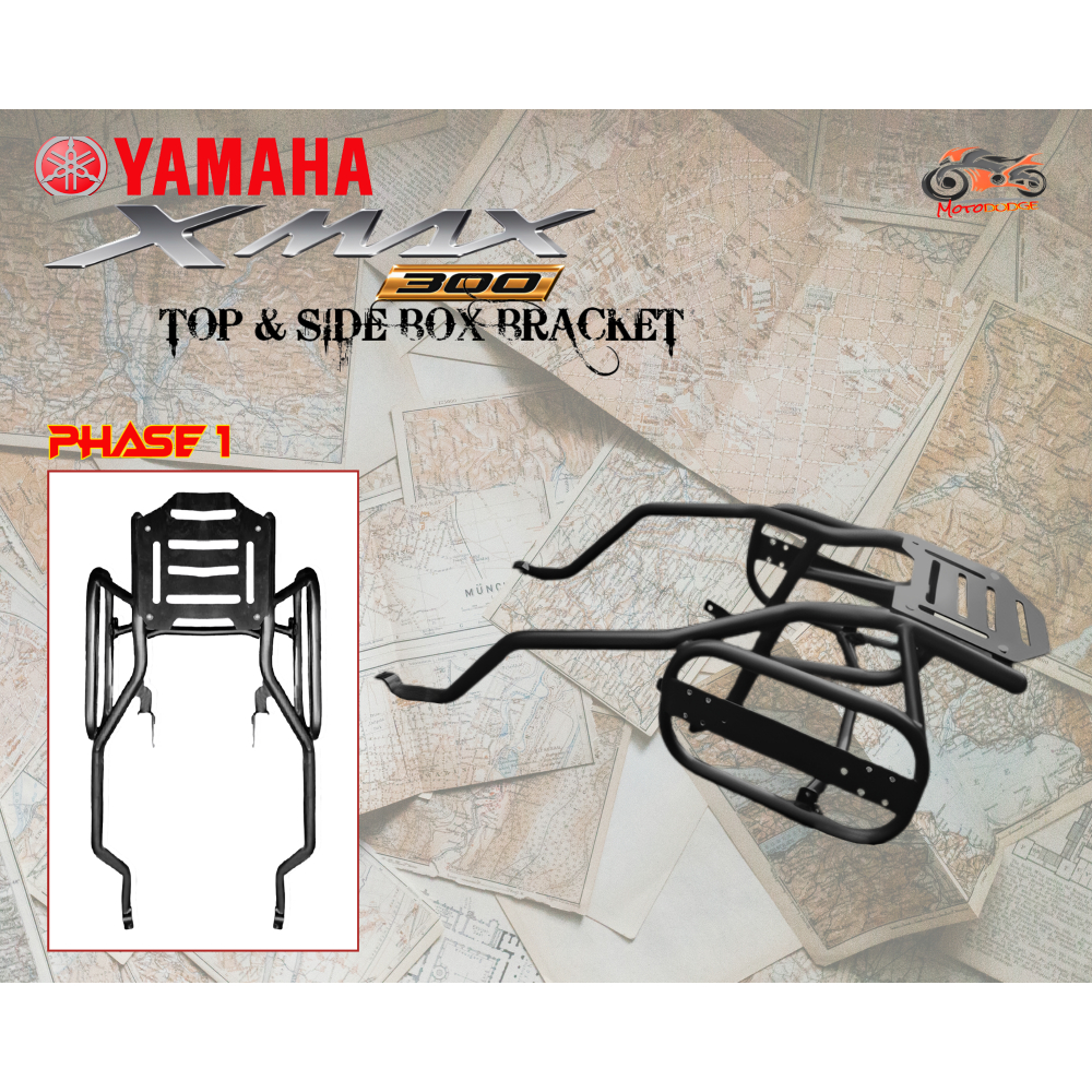 YAMAHA XMAX 300 ( V1 | V2 | V3 | V4 ) - HEAVY DUTY TOP & SIDE BOX BRACKET ( POWDER COAT ) - PHASE 1