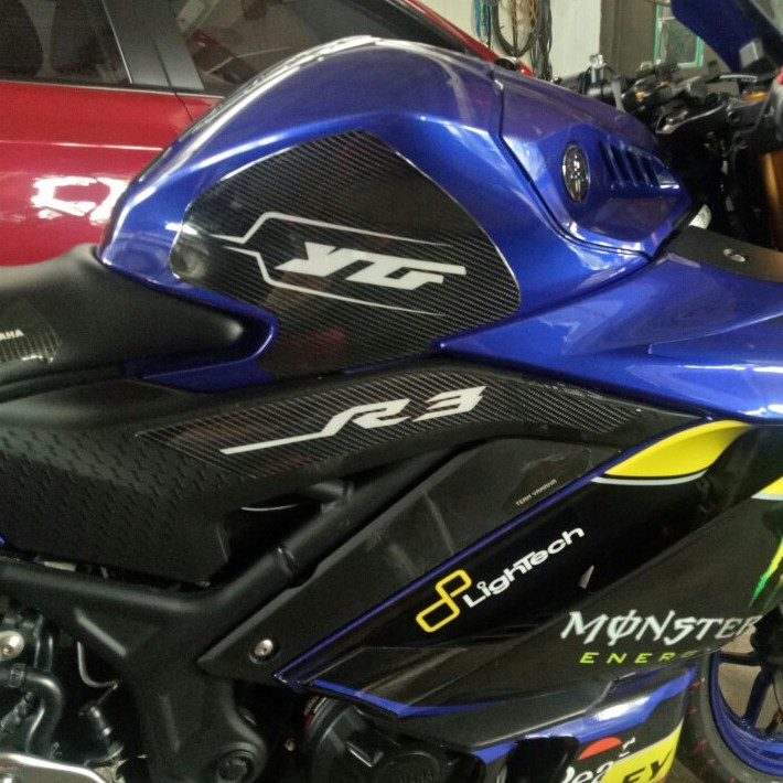 YAMAHA YZF R3 YZF-R3 2019-2020 Motorcycle Carbon Fiber Anti-slip Tank Pad 3M Side Fuel Knee Grip Traction Pads Protector Sticker Set