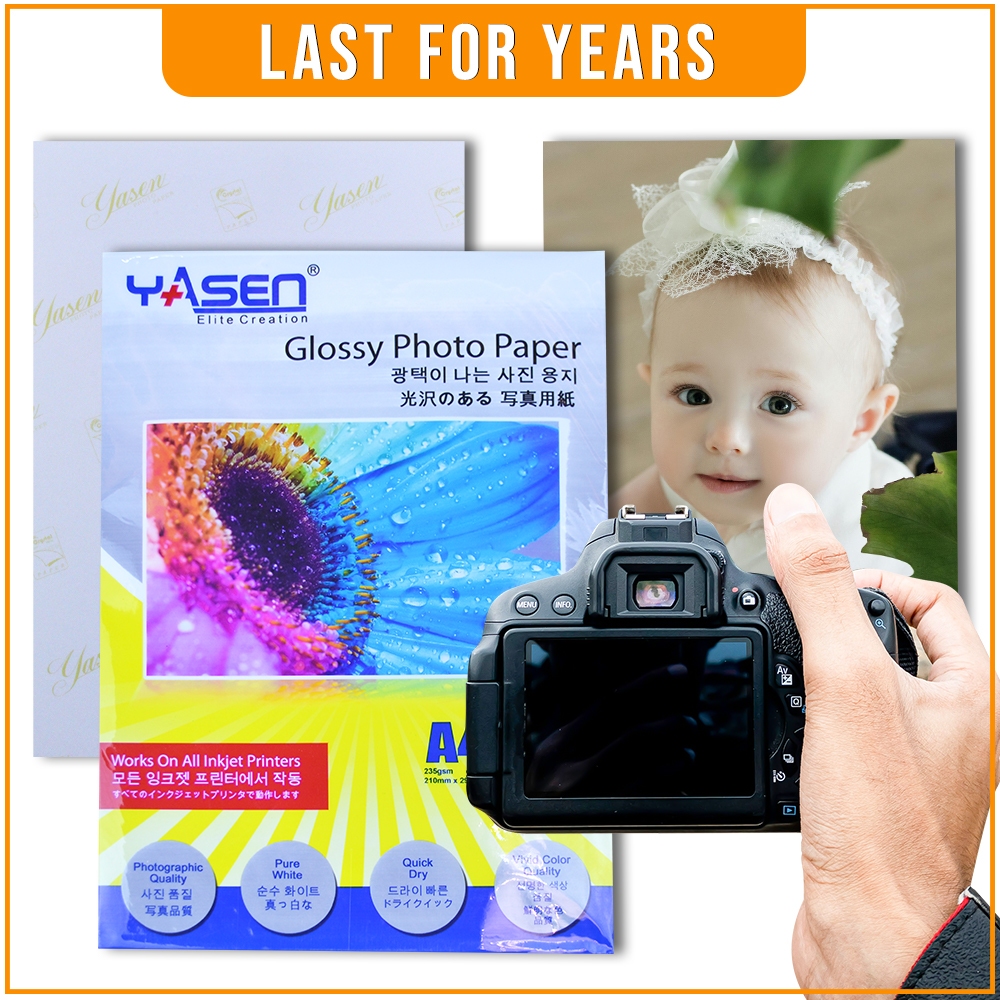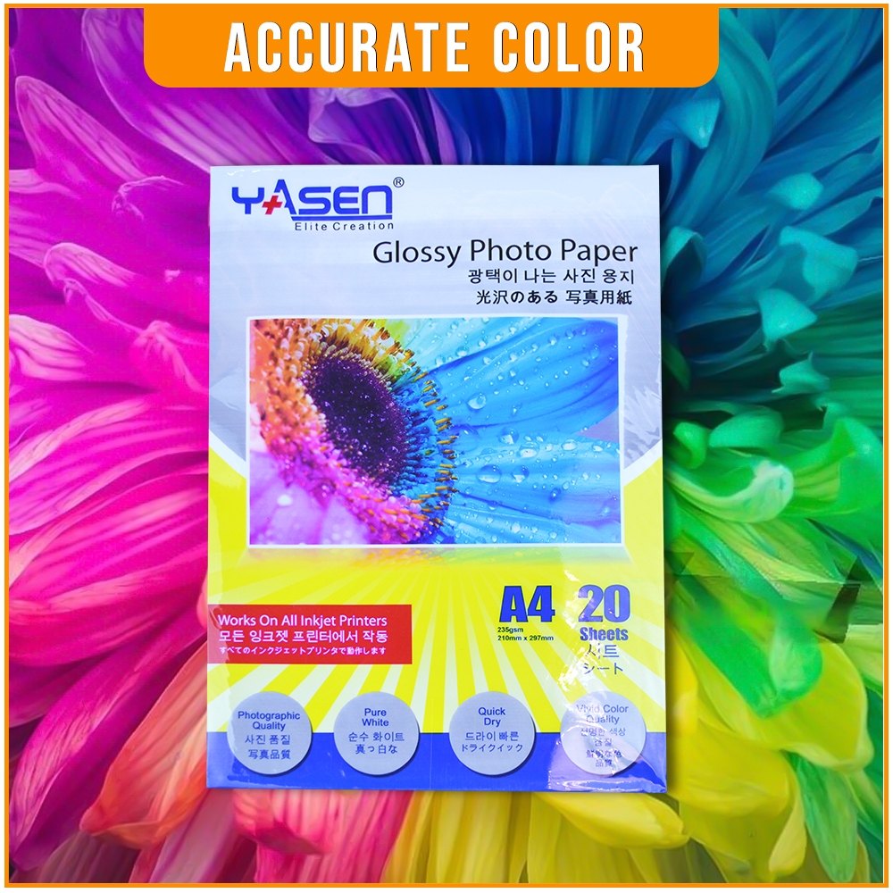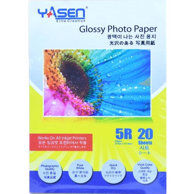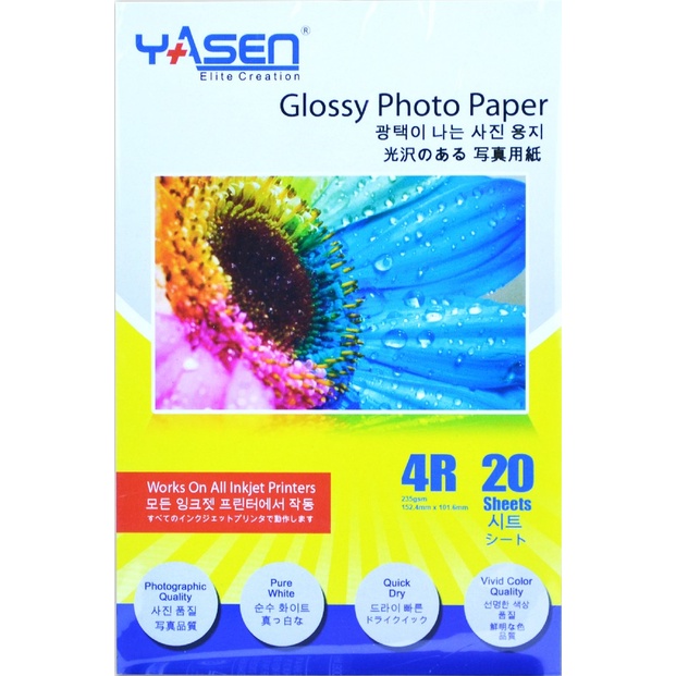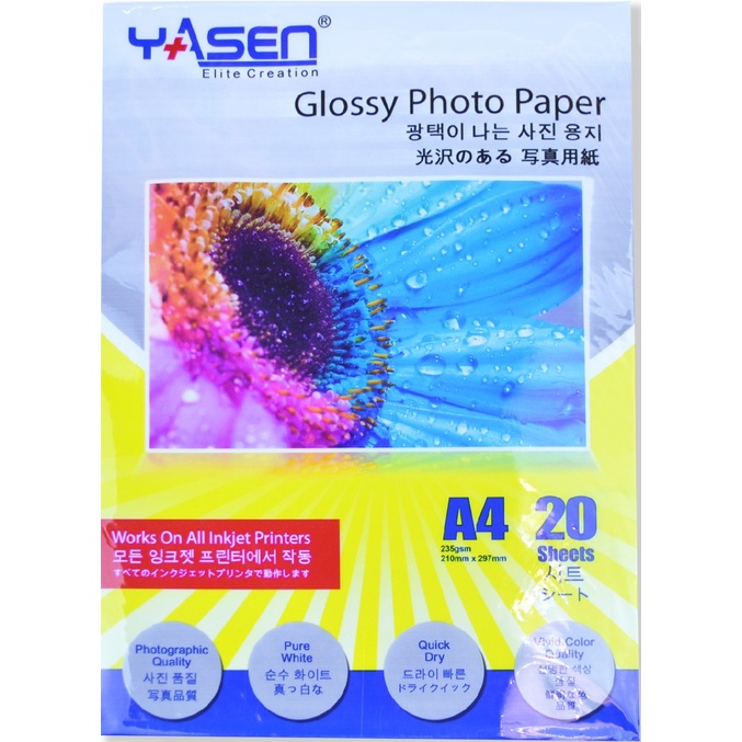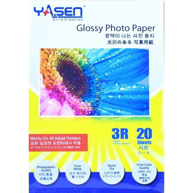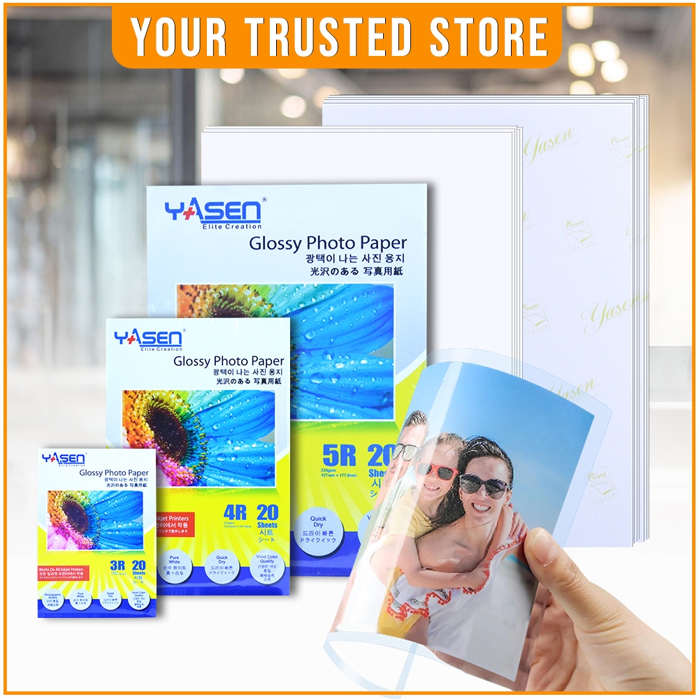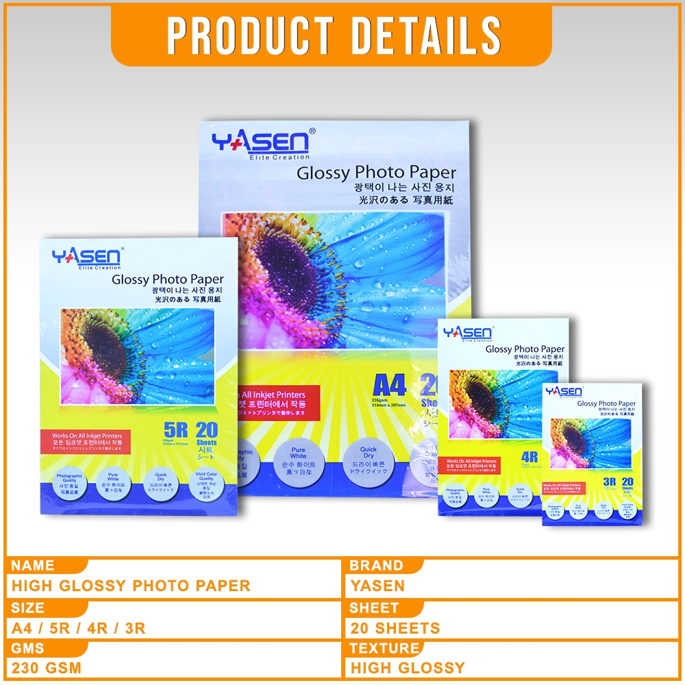 Yasen High Glossy Photo Paper 230GSM A4 | 5R | 3R | 4R (20 Sheets)
