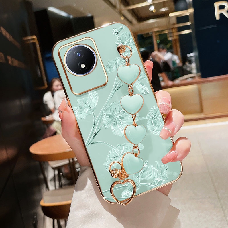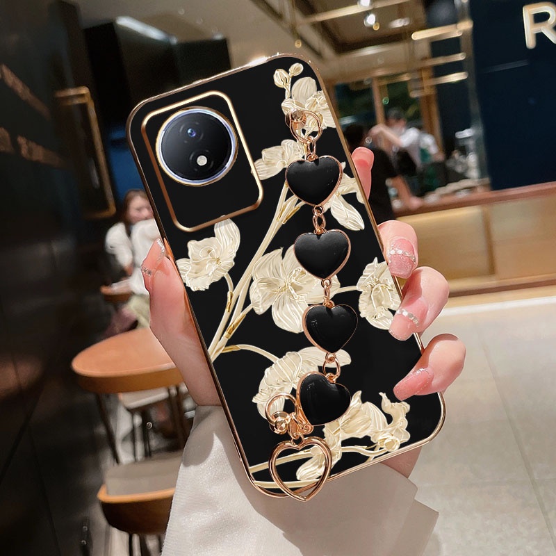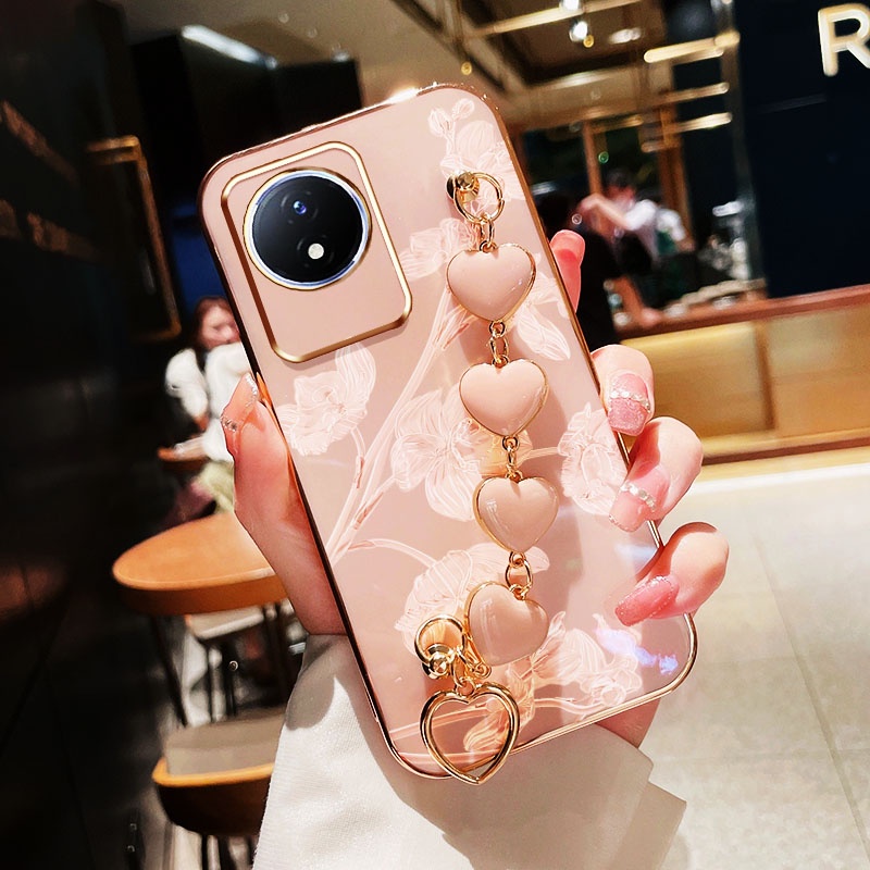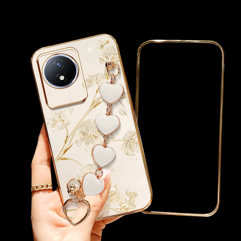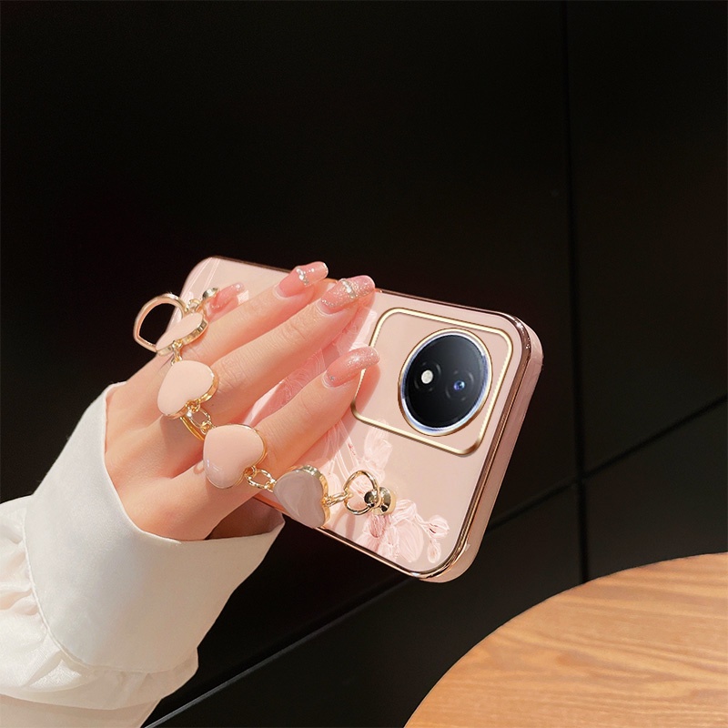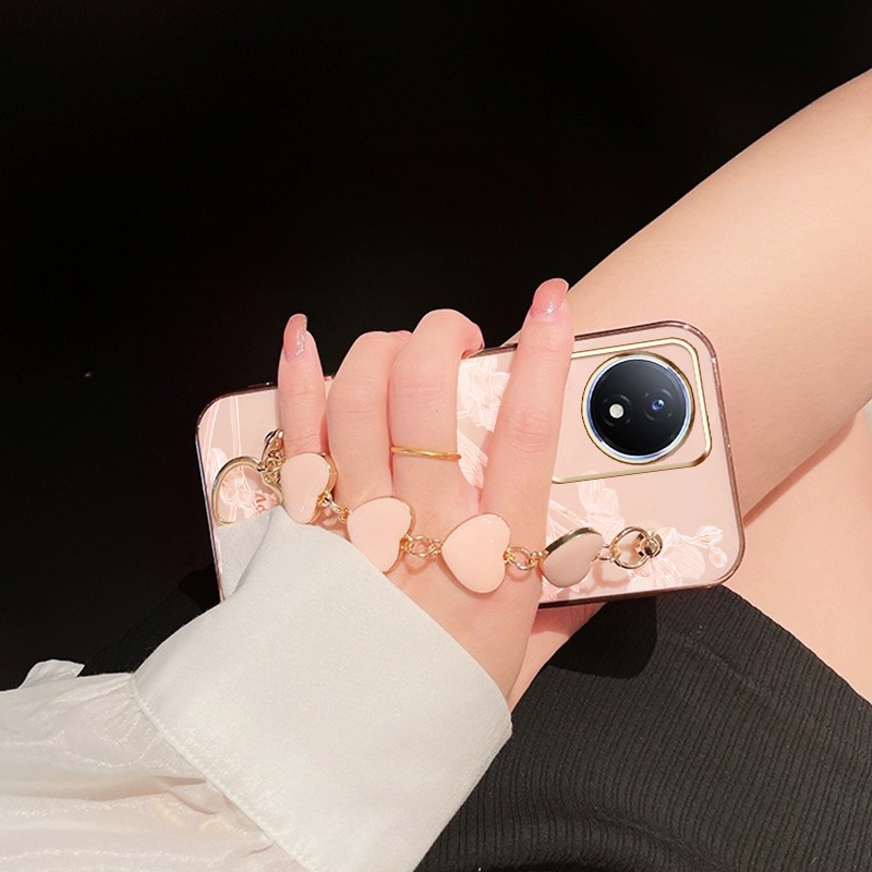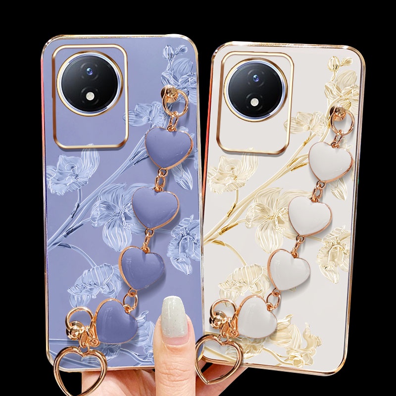 YBD Korean Small Fresh Style Phone Case for Vivo Y02 Y02A Y02T V2254 Beautiful Bauhinia Flower Pattern with Love Bracelet Bracelet