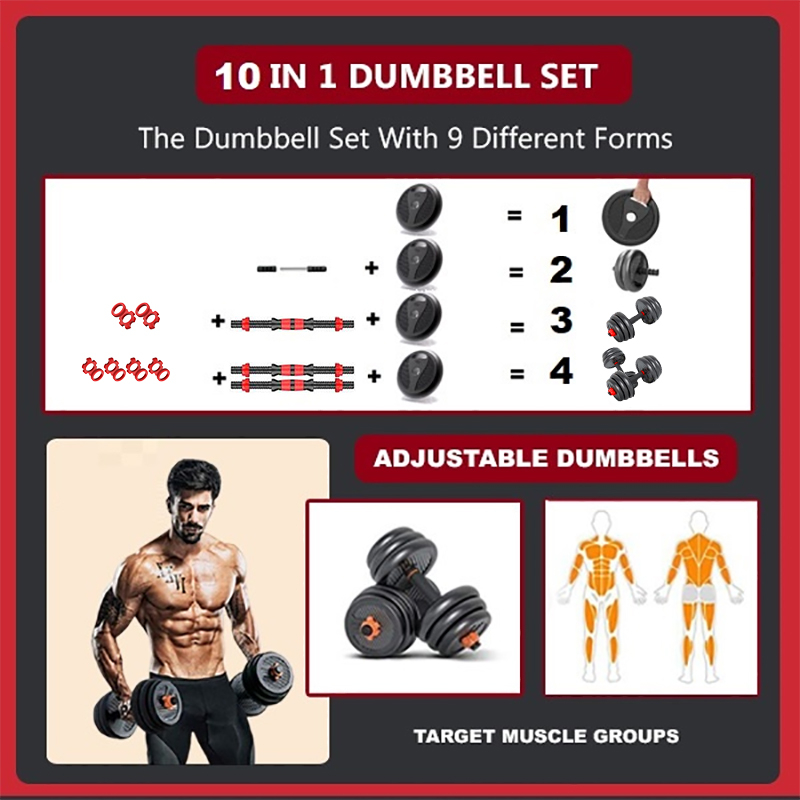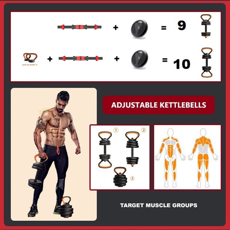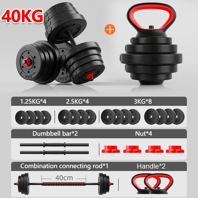 YEESALL 40KG Dumbbell Set, Multi-function 10 IN 1 Kettlebell Set, Household Fitness Dumbbell