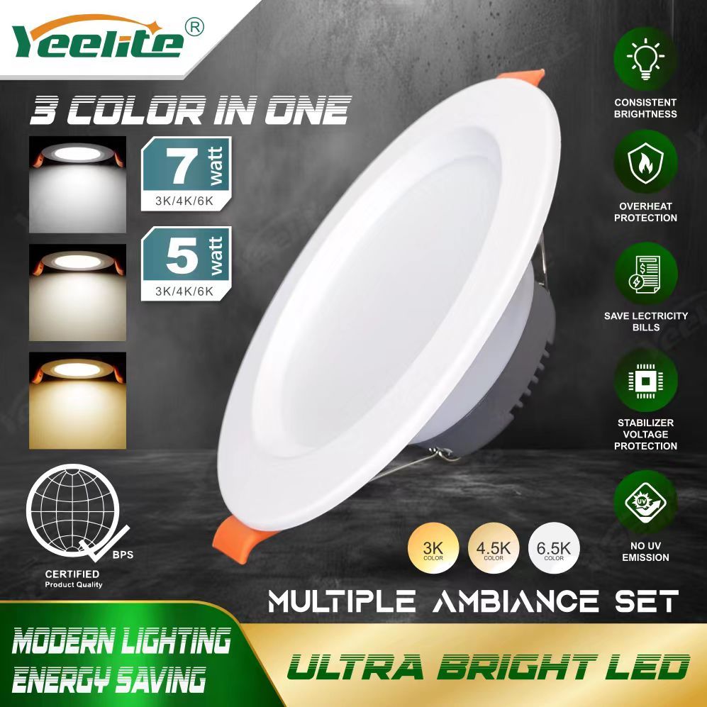 YEESOLAR Led Downlight Recessed Pin Lights Panel Ceiling Light, 3 ColorTemperature 2 Years Warranty