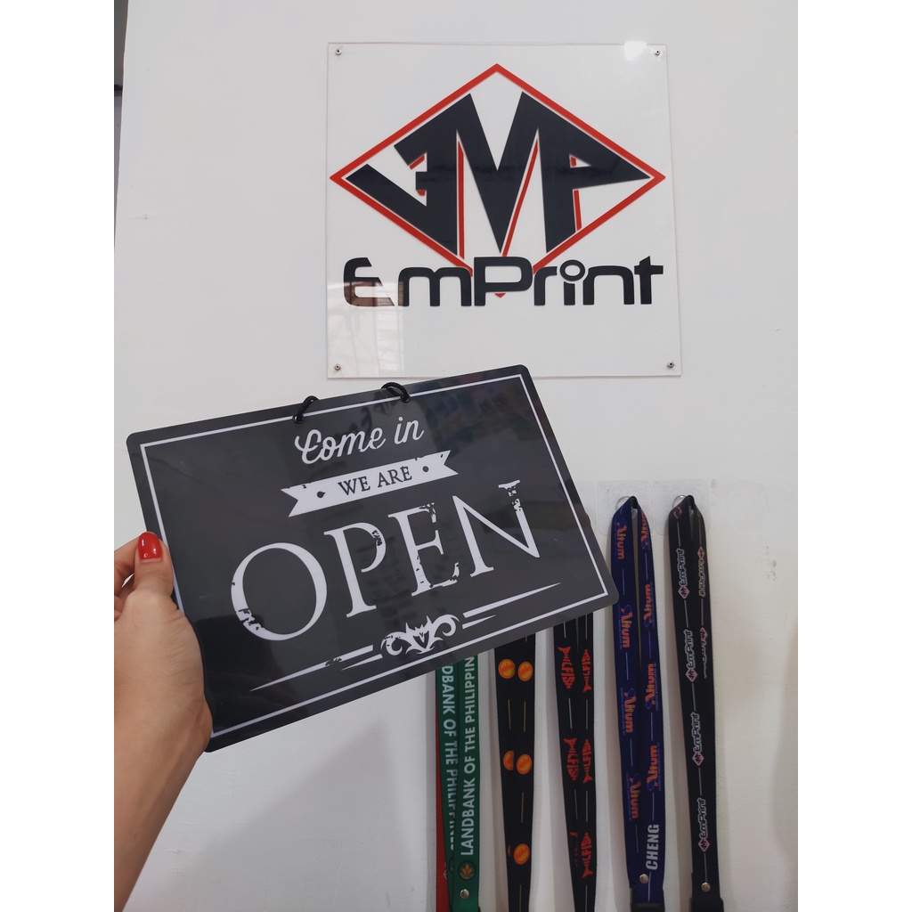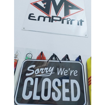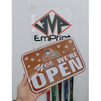YES WE'RE OPEN SORRY WE'RE CLOSED. SIGNAGE PERSONALIZED PVC SIGNAGE A4 SIZE STORE HOURS