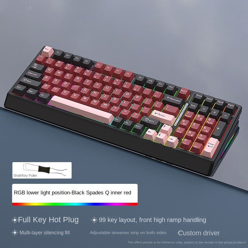 YG98 Full-key Hot Swappable Custom Keyboard Side Light Sandwich-like Structure RGB 2.4Ghz/Type-C/Bluetooth Gaming Keyboards, 4000mAh E-sports for Mechanical Keyboard Gaming Office