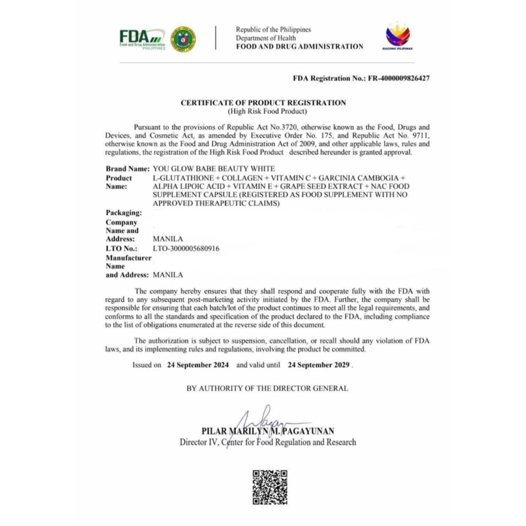 YGB beauty white capsule 500mg 30 capsules per pack