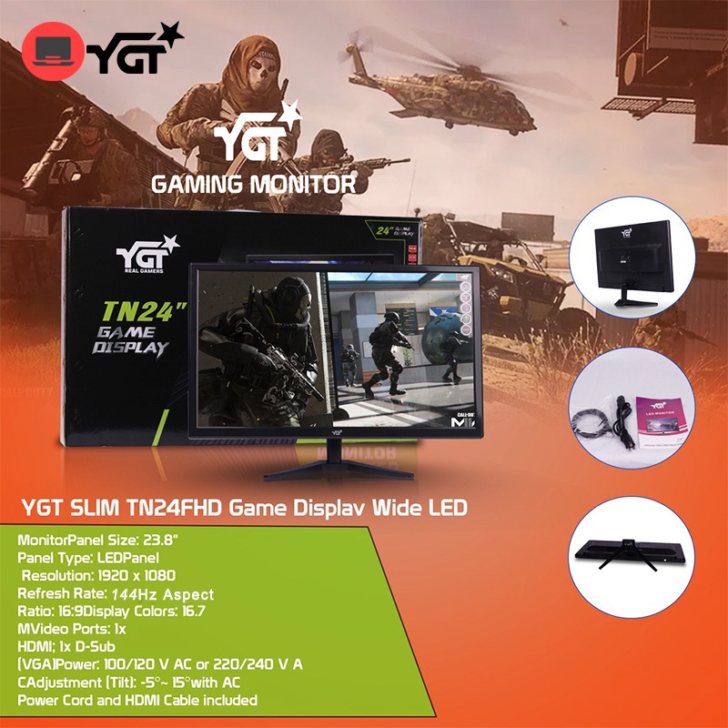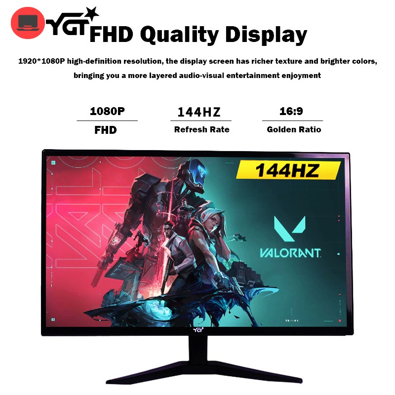 YGT 144Hz 24 Inch Gaming Monitor 1080P FHD Office/Home Desktop Display With HDMI VGA For PC Laptop