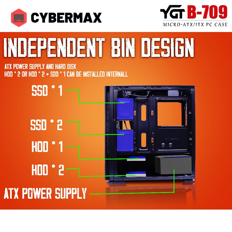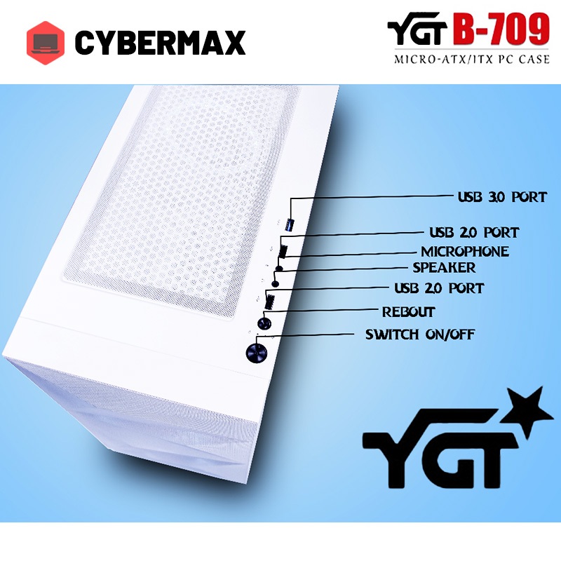 YGT B-709 PC Case Gaming Gase With Tempered Glass Mesh Front Panel Micro-ATX Desktop Computer Case
