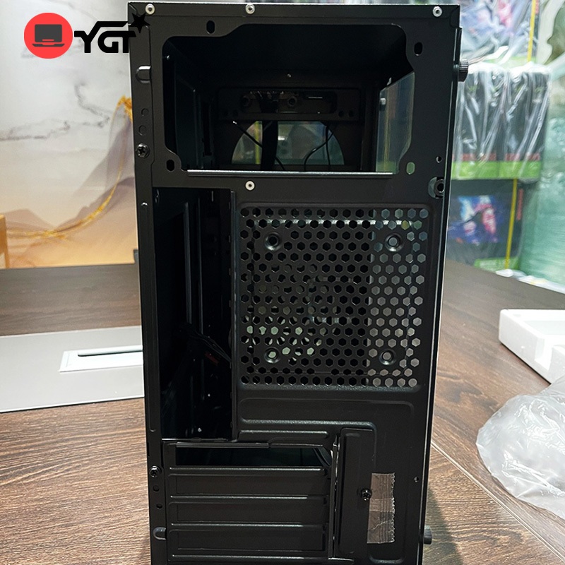 YGT Black PC Case With 2 Fan Tempered Glass Micro ATX Gaming Case Desktop Computer Case
