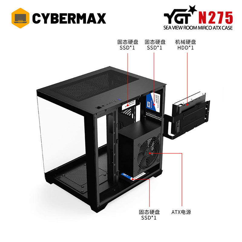 YGT N275 Micro ATX Gaming Pc Case With Tempered Glass Black Computer Desktop Case