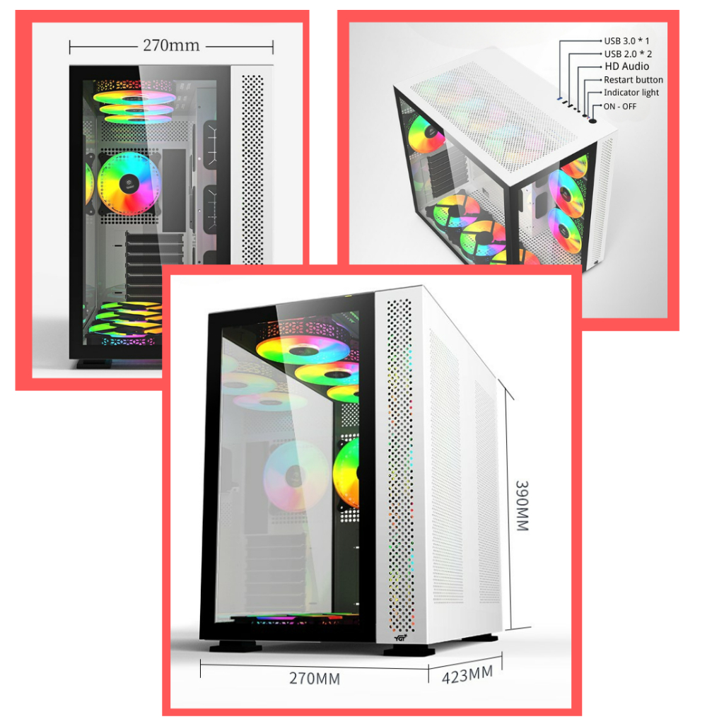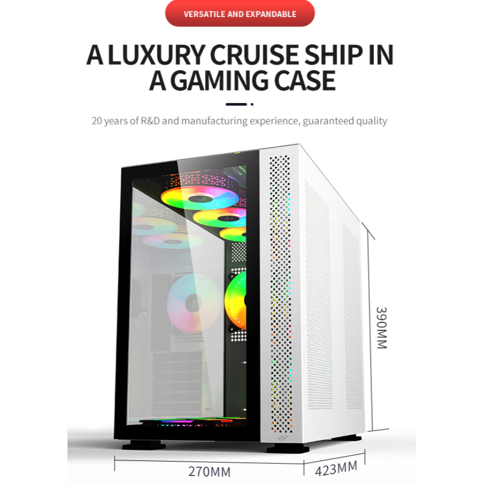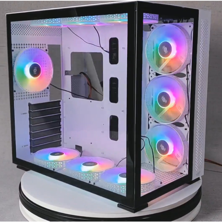 YGT V1 Dual-Chamber ATX Gaming PC Case Tempered Glass Panoramic View Maxt Desktop Computer Case