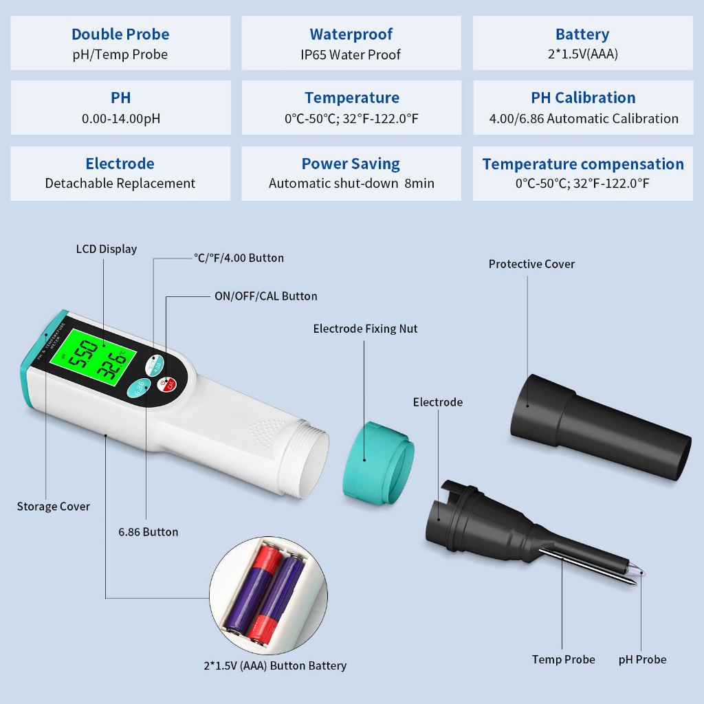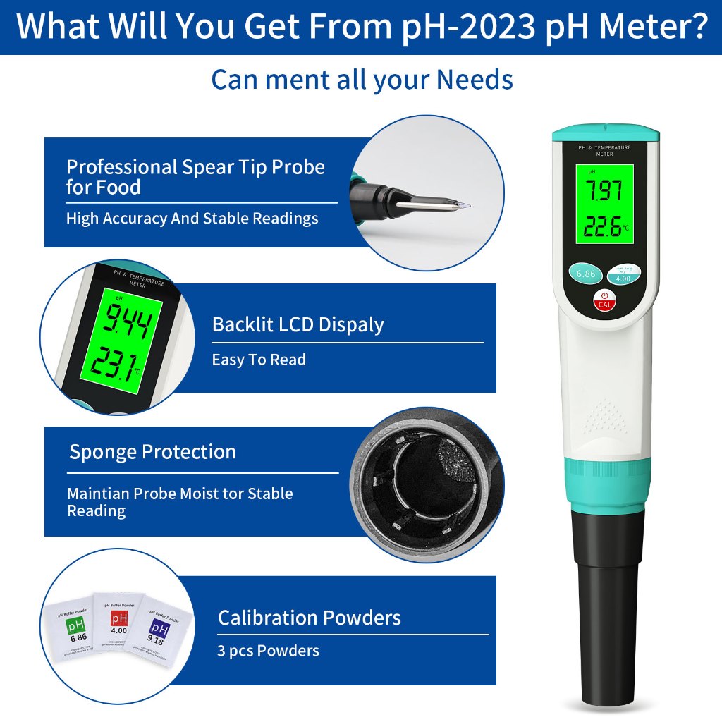 YIERYI pH Meter for Food Digital Food pH Meter pH Tester for Sourdough, Meat, Bread, Cheese