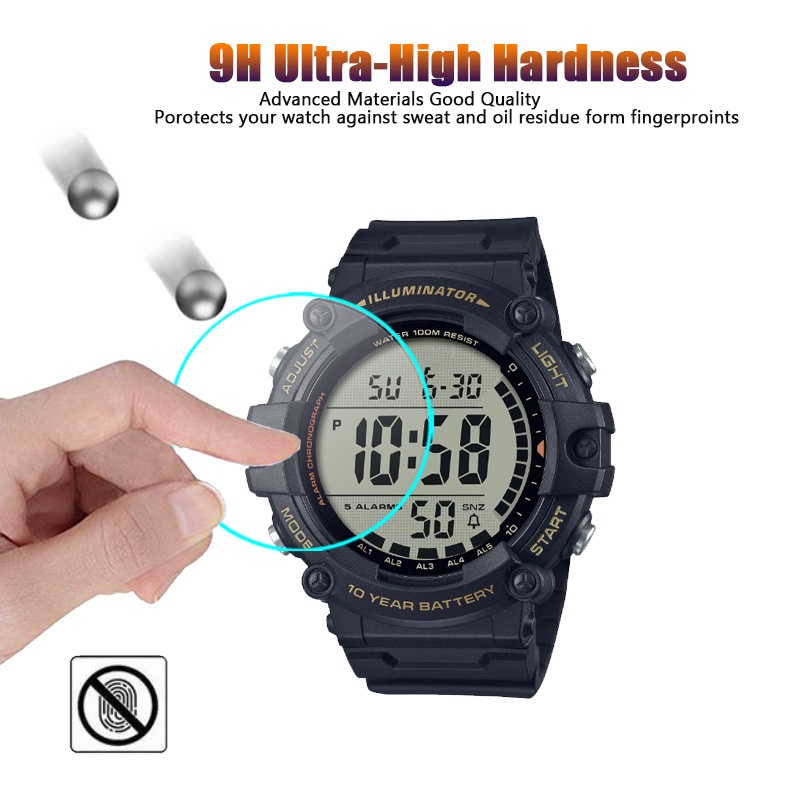 YIFILM 2PCS HD Clear Tempered Glass Protective Film For Casio LWS-1200H Anti-scratch Glass Screen Protector For Casio AE-1500 AE1500