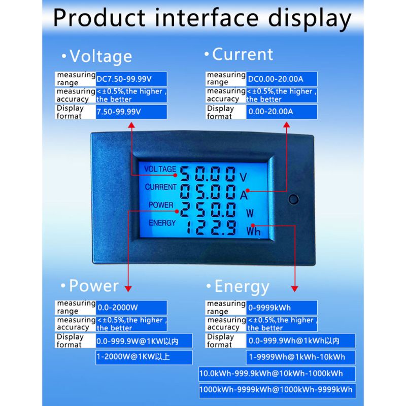 YIN LCD Display Digital Current Voltage Solar Power Meter Multimeter Ammeter Voltmeter Wattmeter Electrical Panel Gauge