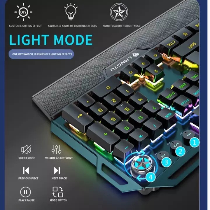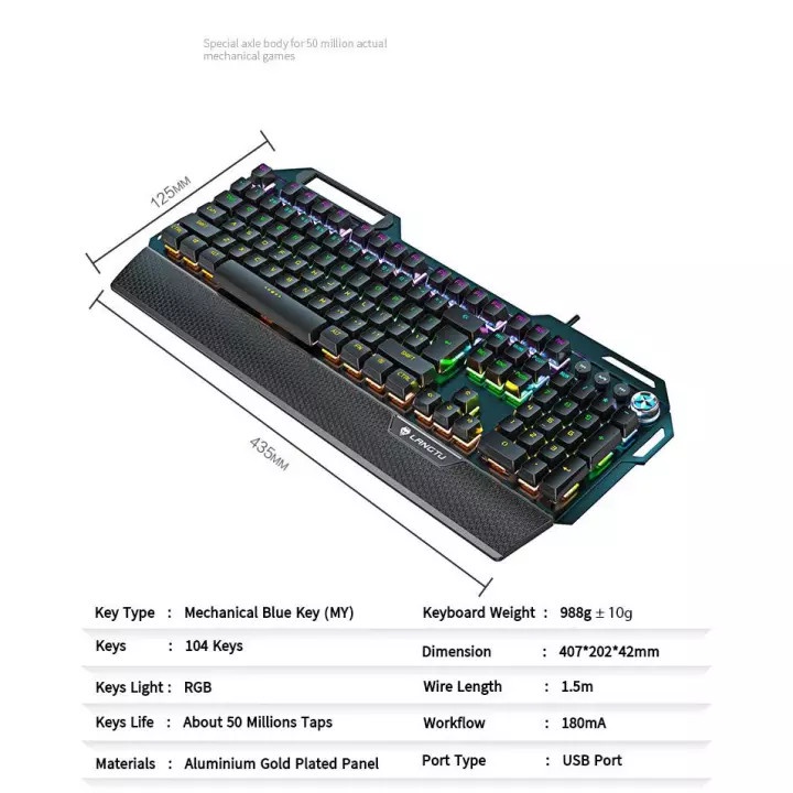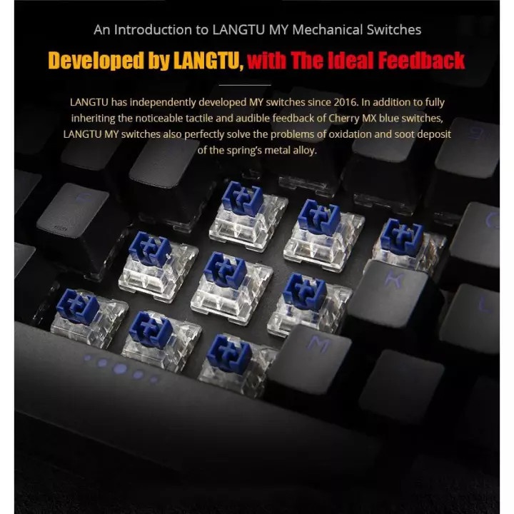 YINDIAO K100 Mechanical Keyboard Rainbow Backlit Full 104-Key With LANGTU MX Switch