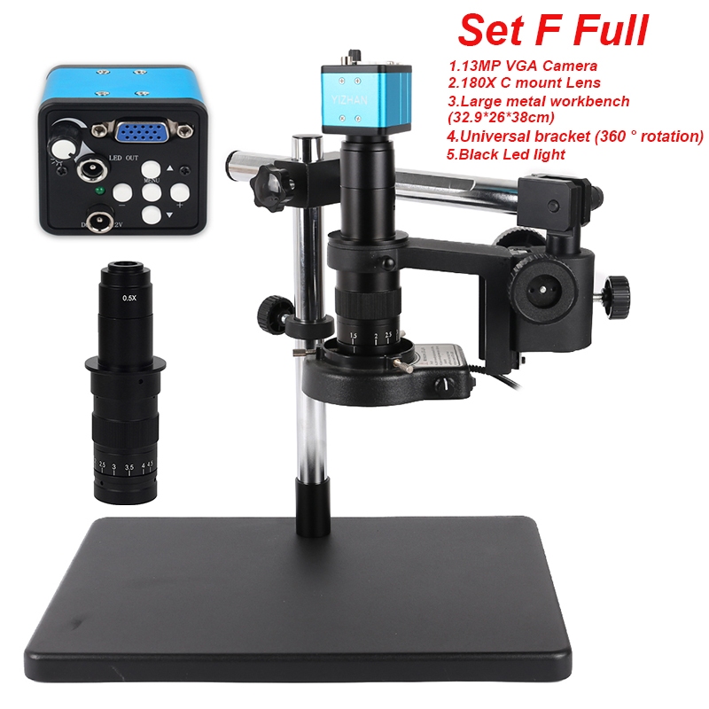 YIZHAN Microscop Metal Large Workbench Universal Bracket Digital Video Electronic Microscope Full Sets 4K 48MP/13MP USB HDMI VGA Camera 180X Lens