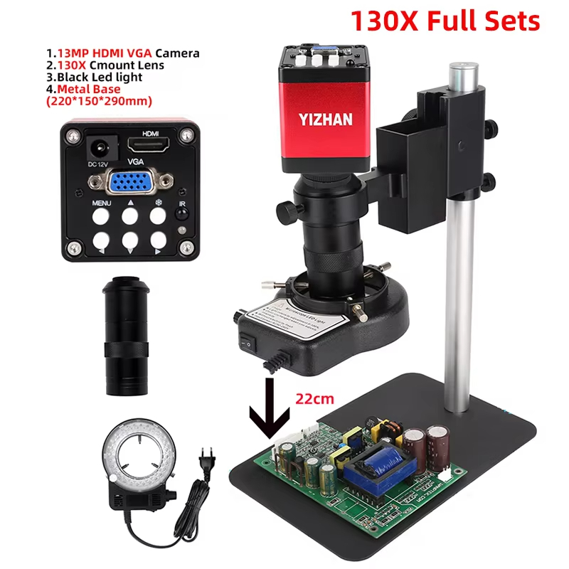 YIZHAN Microscope 4K Electronic Digital Microscope For Soldering Microscope Set 1080P HDMI VGA USB Industrial Camera 150x Lens Fold Bracket Remote