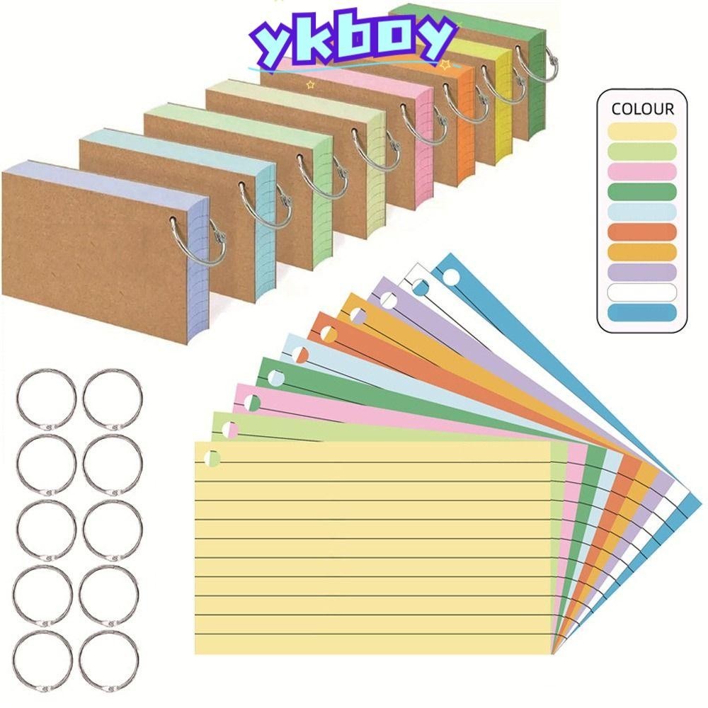 YKBOY Loose-Leaf Index Cards, With Cover Loose-Leaf Binder Memo Book, Durable Horizontal Line Double-sided Flash Cards Office