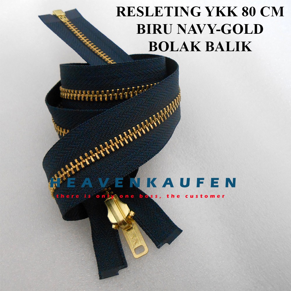 YKK Jacket Zipper 80 cm 32 inch Iron Teeth/ Navy Darkbiru - Gold Reversible