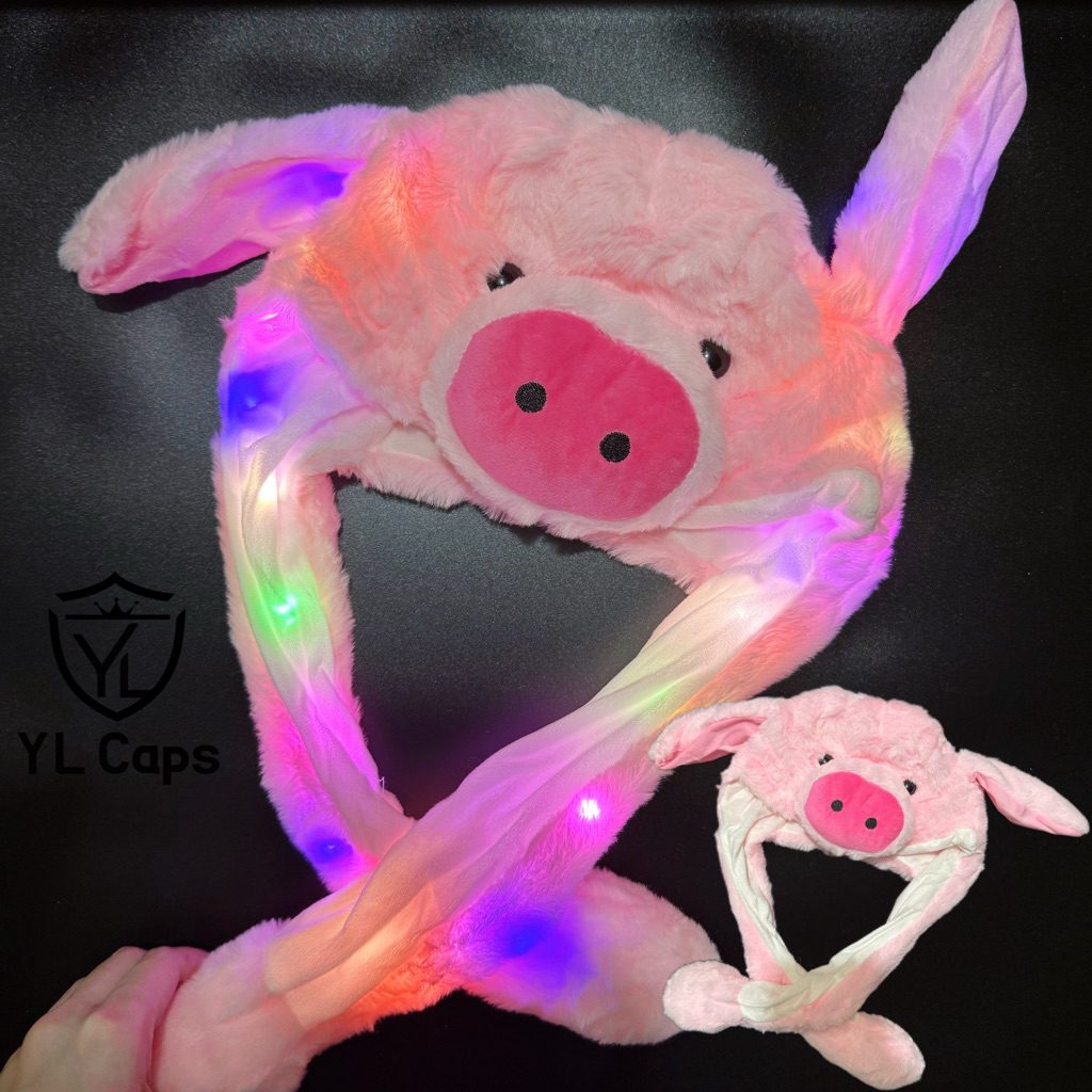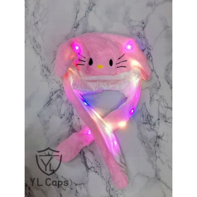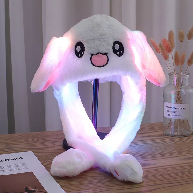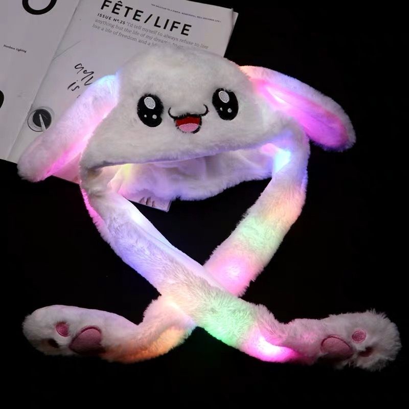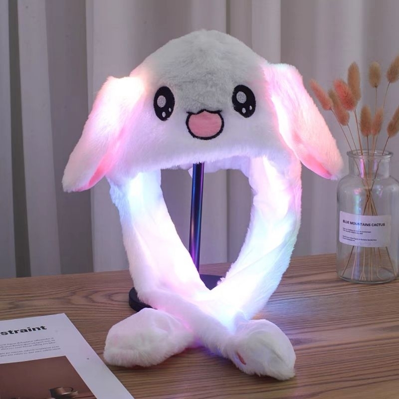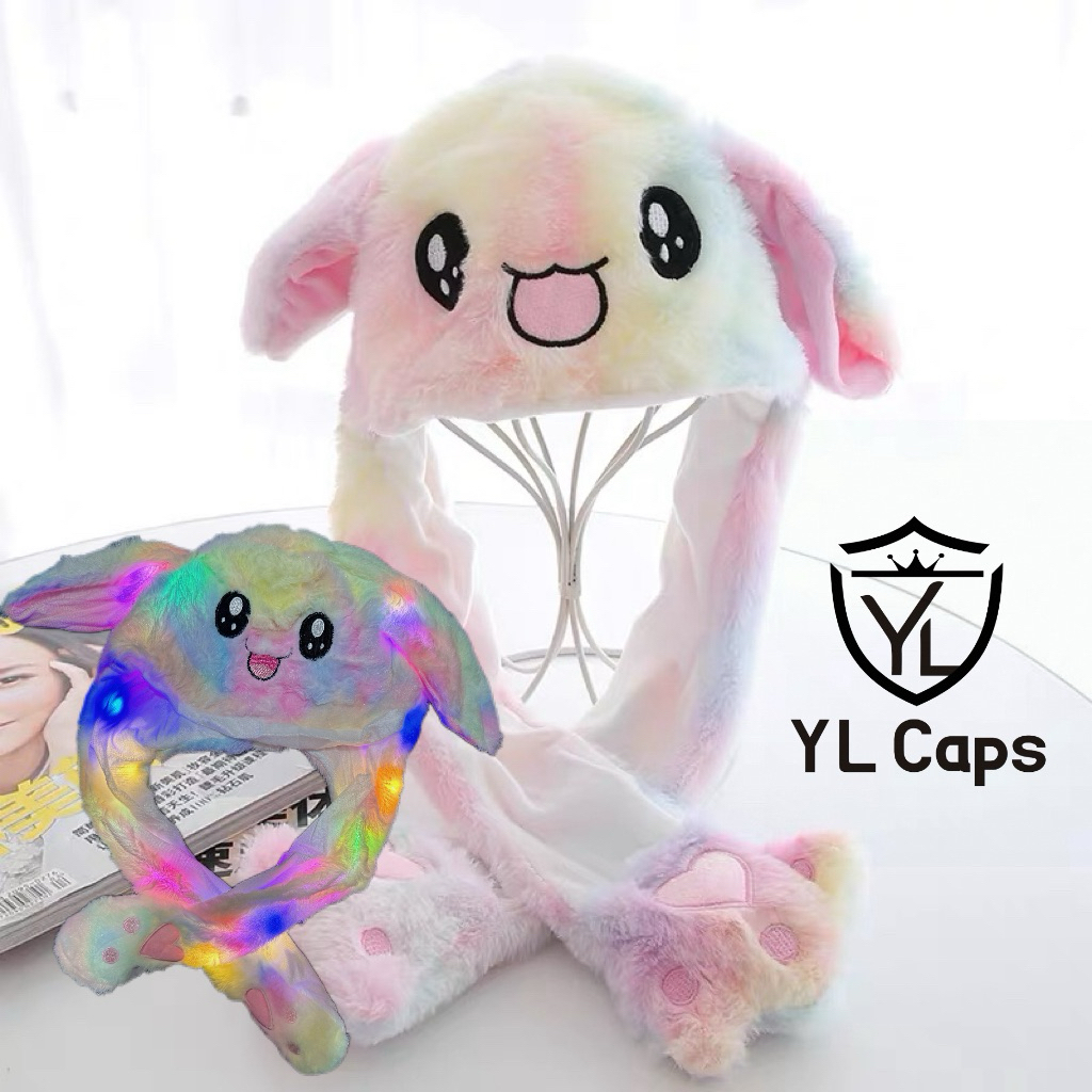 YL Caps Rabbit Animal Caps with Moving Ears and LED Light Long Ears for Kids and Adult Bunny Air Bag