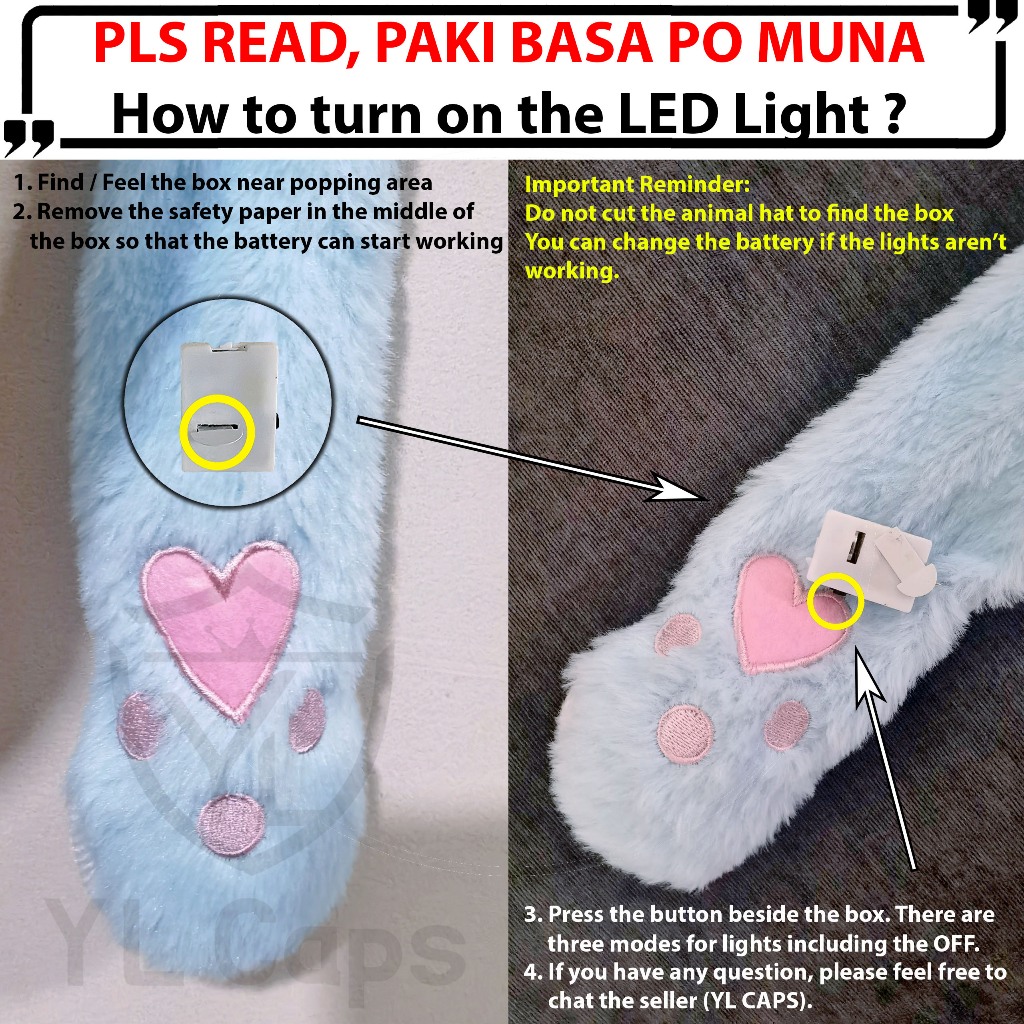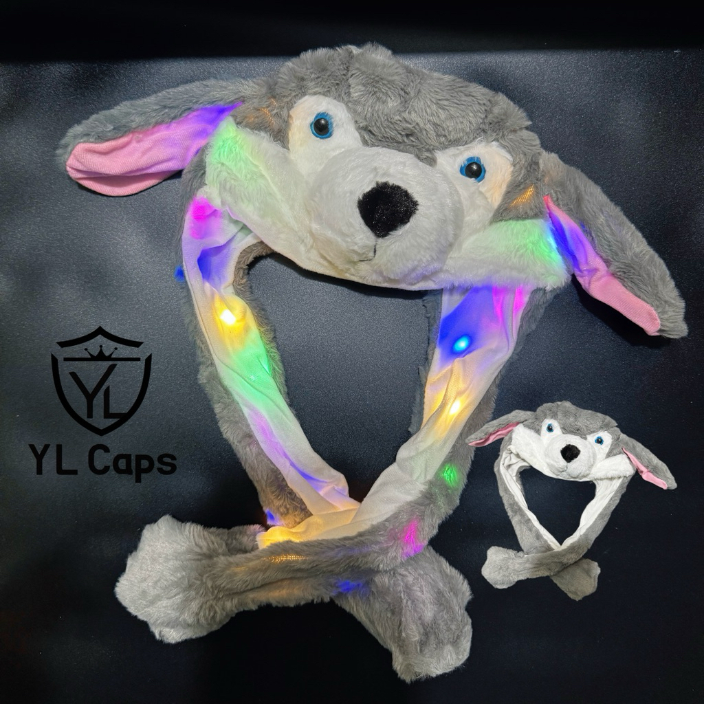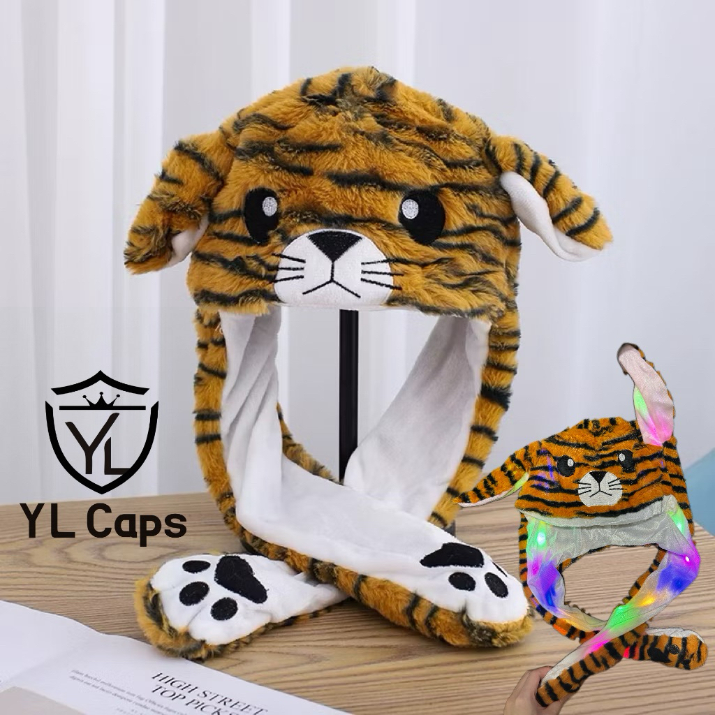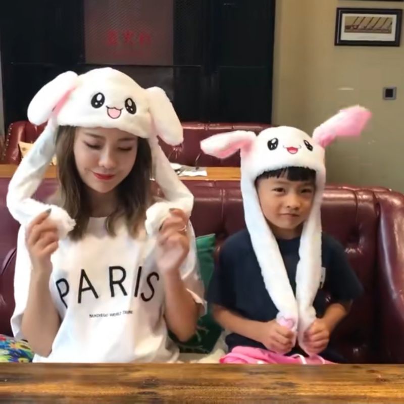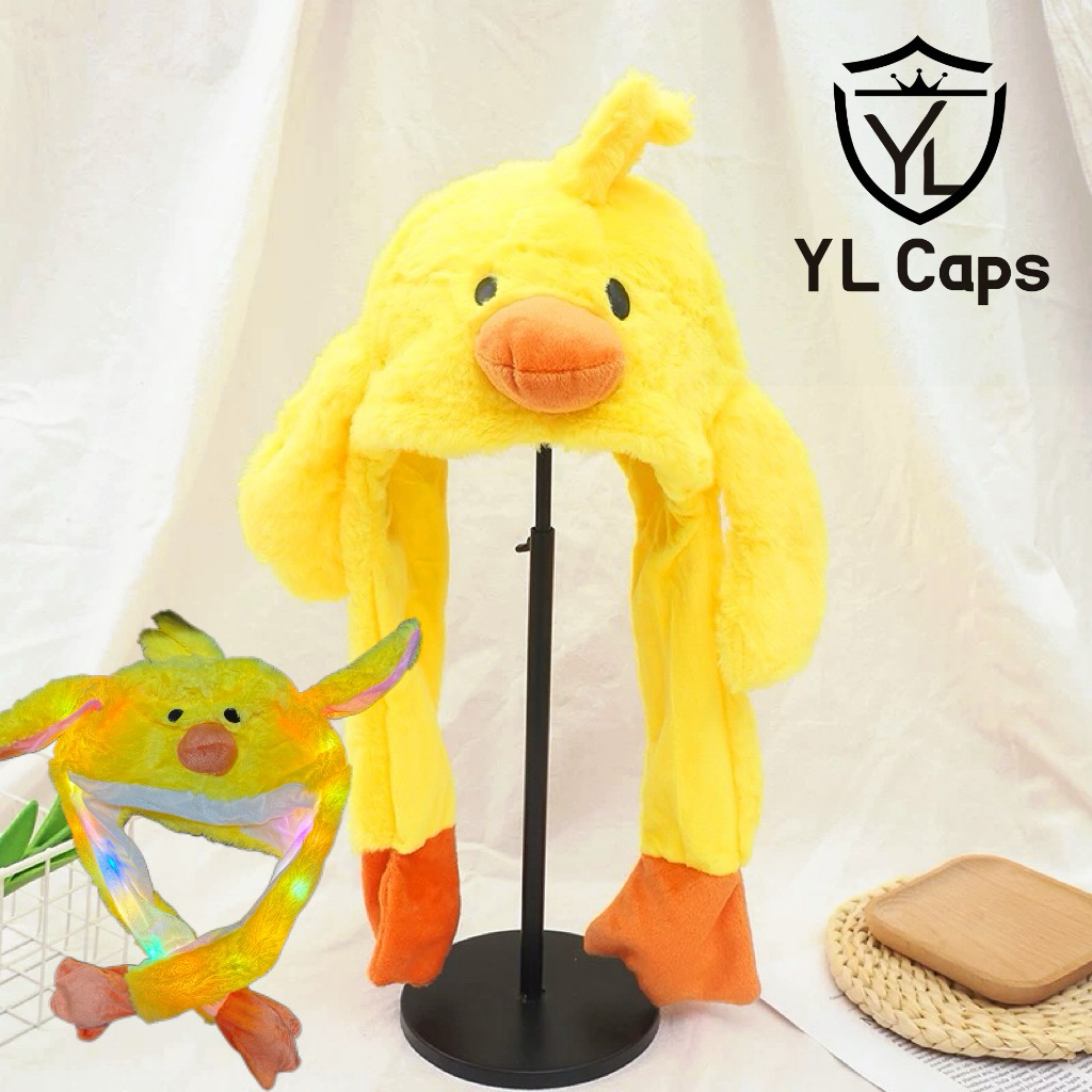 YL Caps Rabbit Animal Caps with Moving Ears and LED Light Long Ears for Kids and Adult Bunny Air Bag