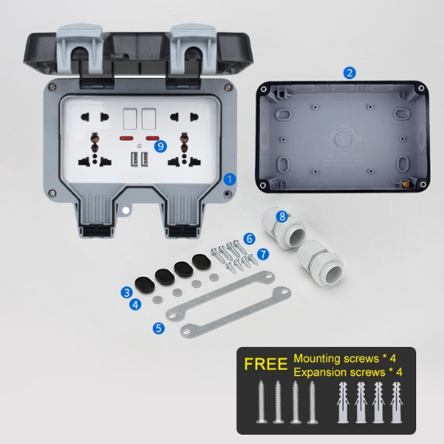 YM Outdoor Waterproof Wall Socket IP66 Waterproof Outlet with Cover Outdoor Wall Outlet with USB