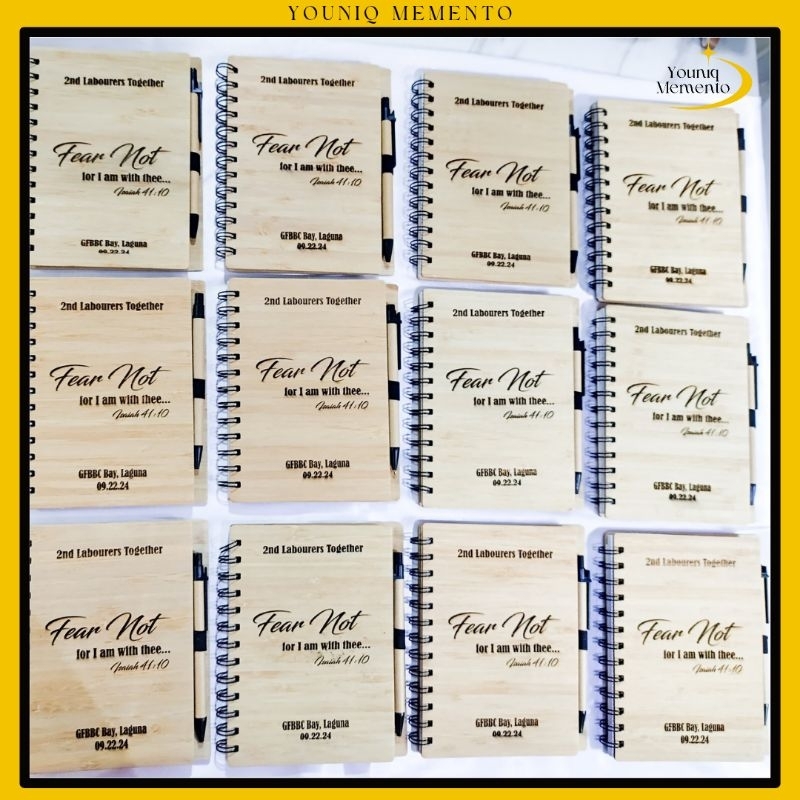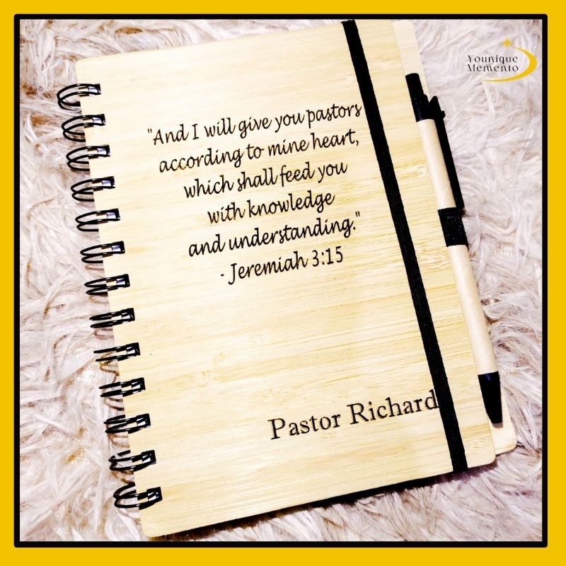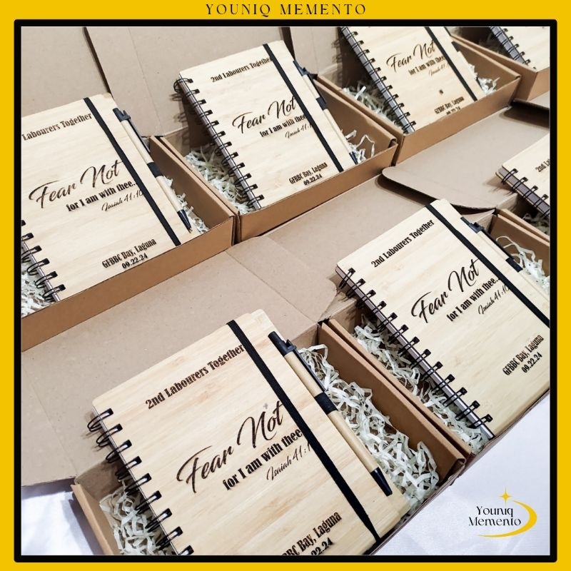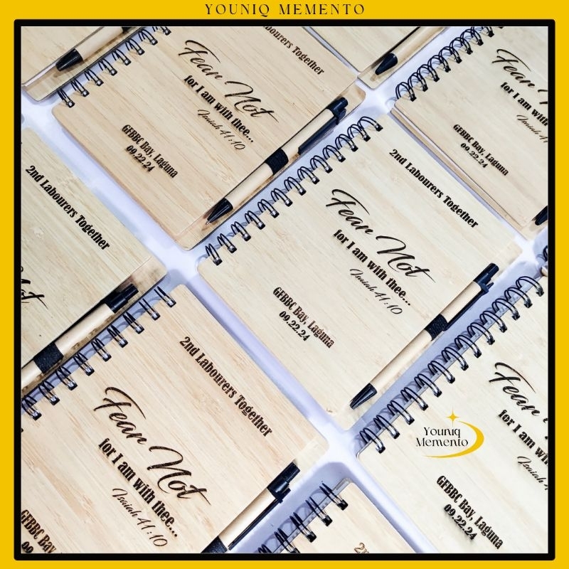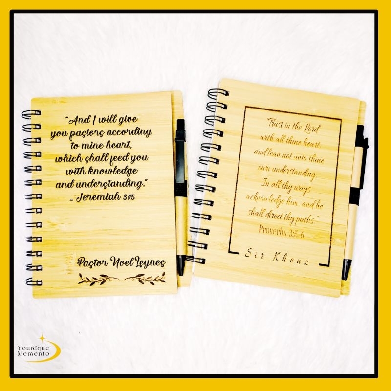 YM Personalized Bamboo notebook with pen Laser engraved wooden notebook customized Younique memento