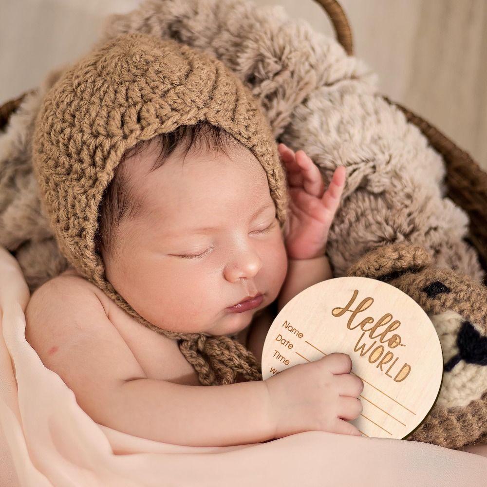 YNATURAL Baby Announcement Sign, Hello World Wooden Newborn Welcome Sign, 15 cm Birth Baby Name Plaques