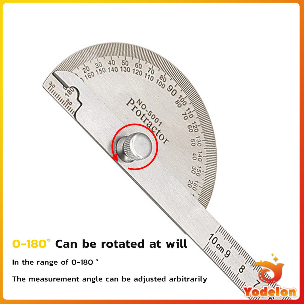 YOD Stainless Steel Protractor Adjustable Roundhead Ruler 180 Degree Rotary Measuring Rule