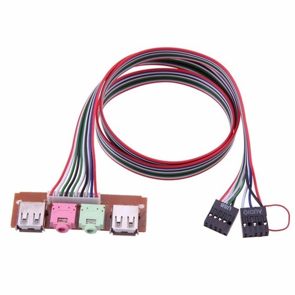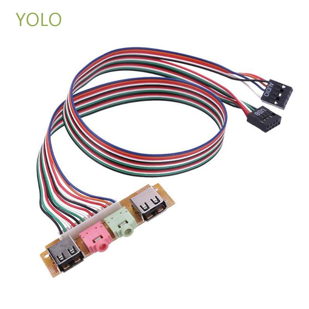 YOLO Dual USB Computer Case Panel Desktop PC Motherboard Expansion Card Audio Jacks Port USB Audio Port 6.8CM Mic Earphone Cable 2 USB Ports Extension Wire 2 Audio Jacks Front Panel