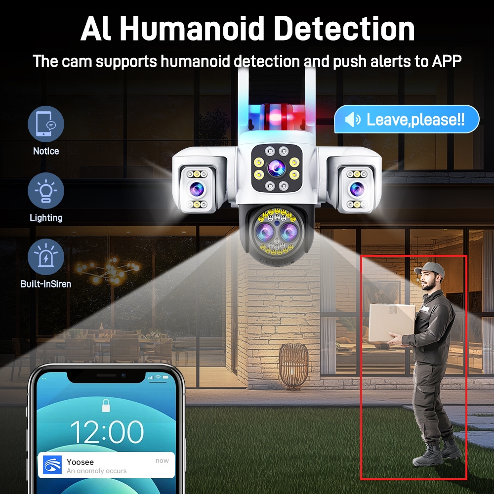YOOSEE Y60 10x Zoom 6MP Three Lens Camera CCTV WiFi/4G Outdoor Waterproof Night Vision Alarm Light