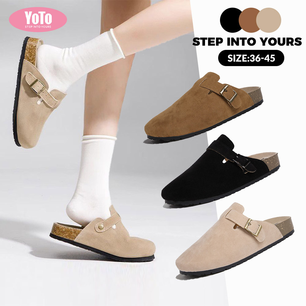 YOTO Clogs Sandals For Women Men Leather Soft Comfy Couple Casual Half Slippers Unisex Footwear