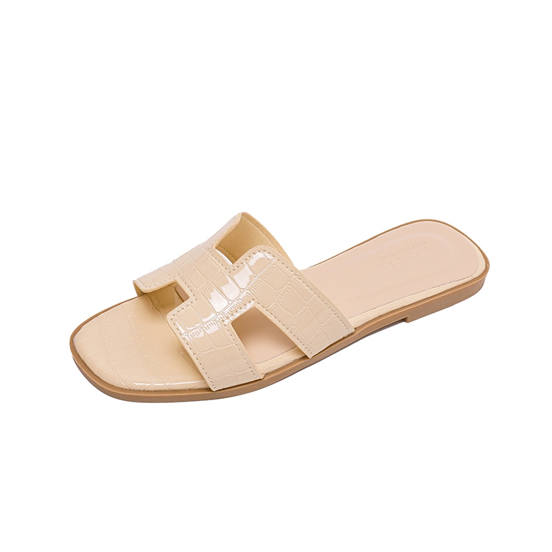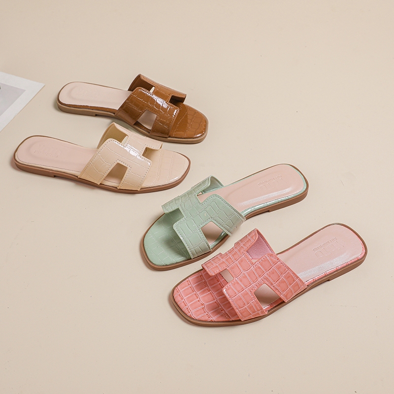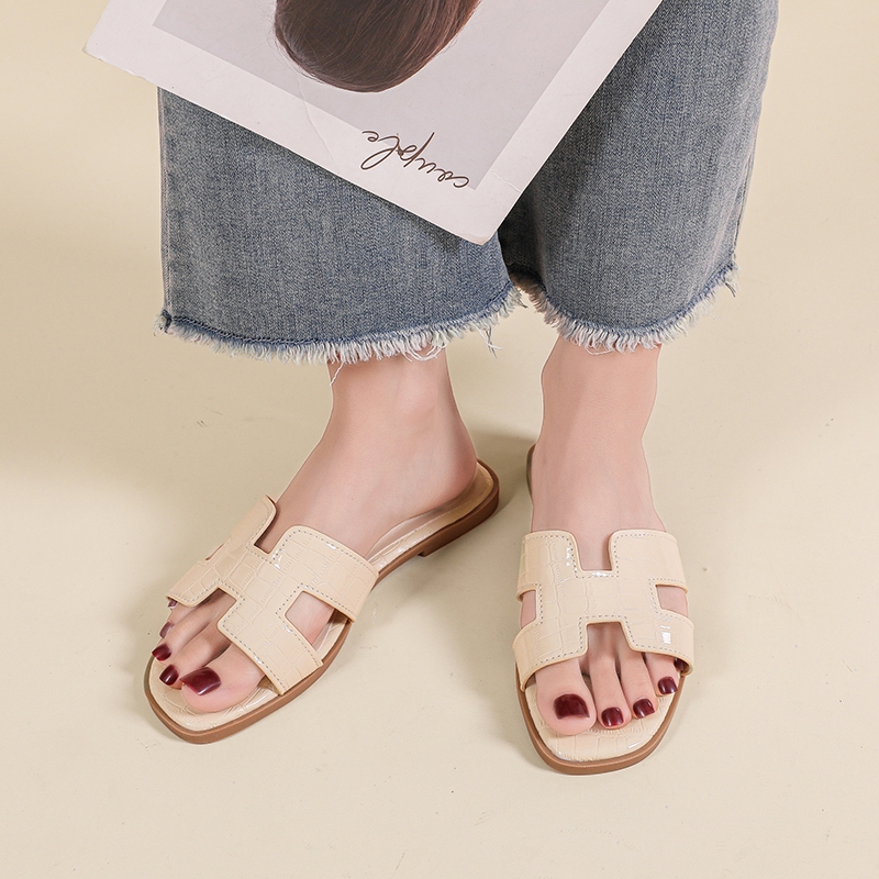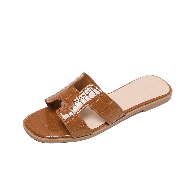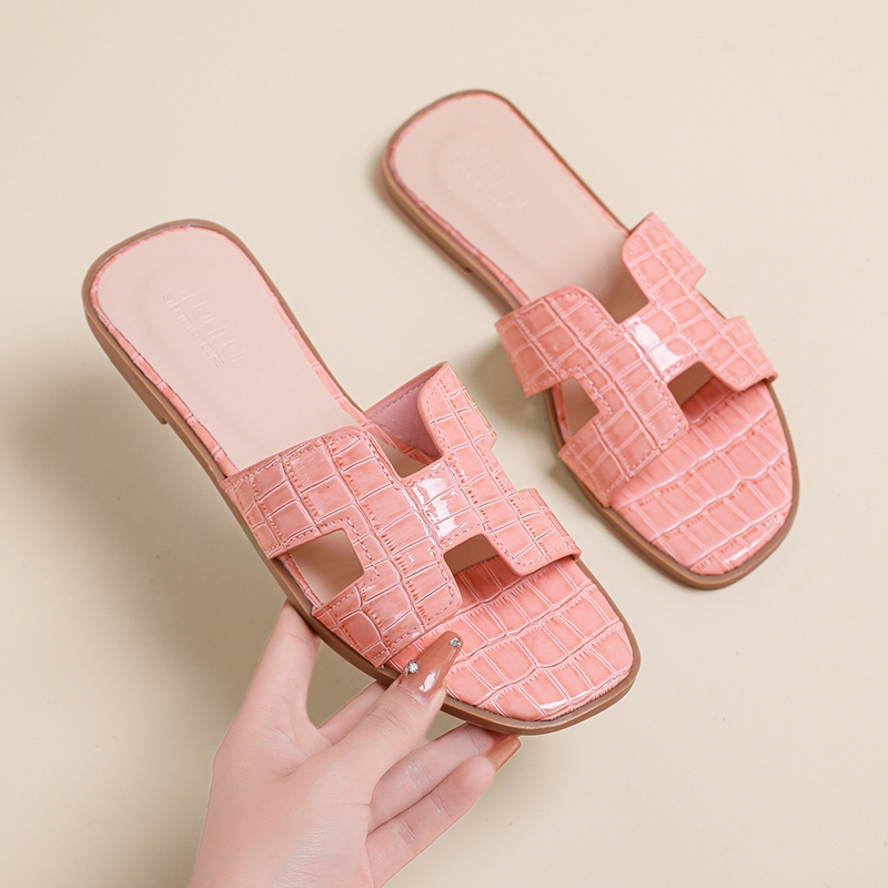 YOTO H Strap Sandals For Women Elegant Crocodile Pattern Leather Soft Sole Summer Beach Slippers