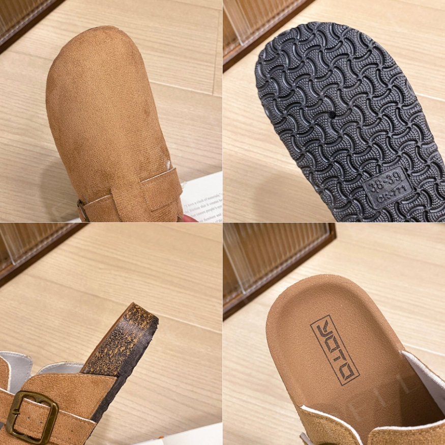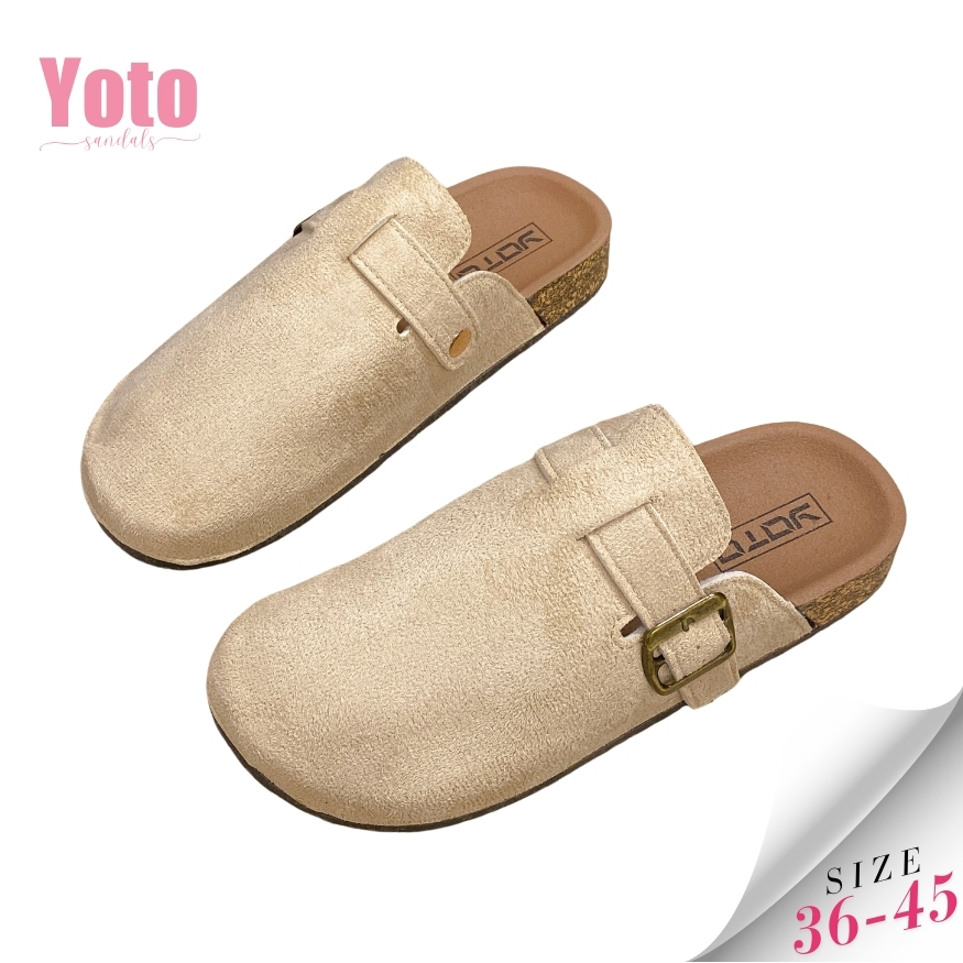 YOTO Unisex Half Shoes Made of Suede Material with Belt Design Flat Mules Casual Loafers for Women