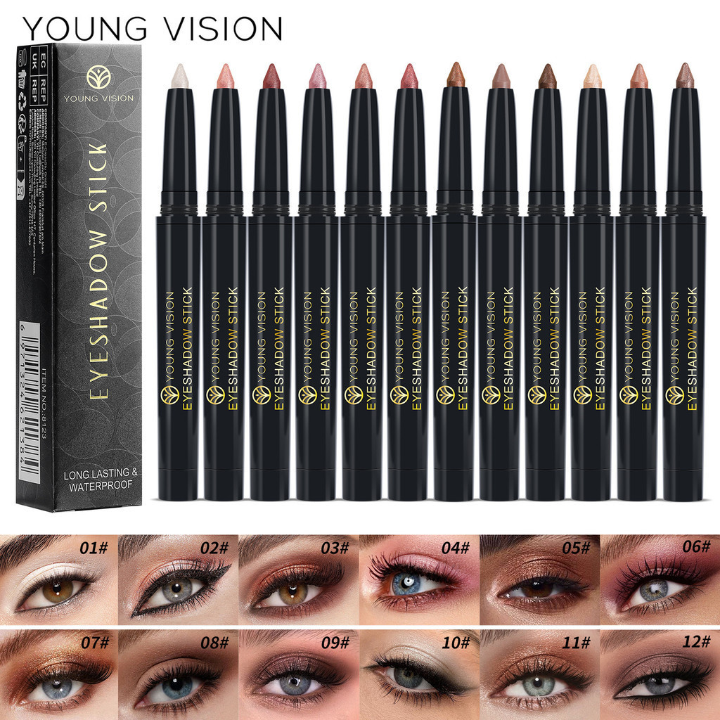 YOUNG VISION Smoky Rose Purple Eyeshadow Pencil Glitter Shimmer Highlighter&Eye Shadow Eyeliner Stick Bronze Matte Eye Shadow Stick Makeup