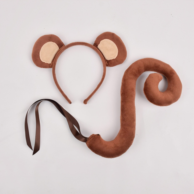 YOUYO Monkey Ears Headband and Tail Animal Monkey Cosplay Costume for Kid Adult Halloween Birthday Party Stage Performan